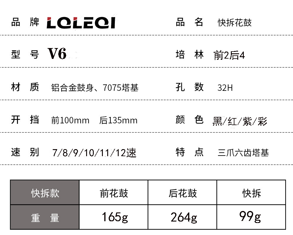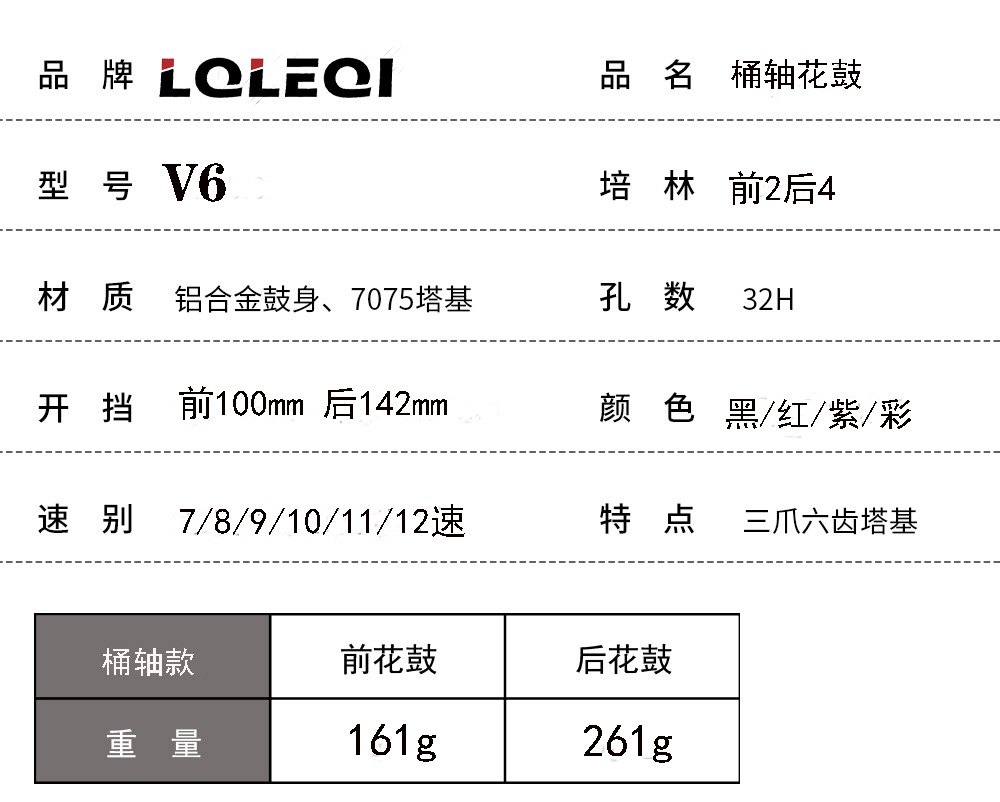 LQLEQI v 6マウンテンバイク揚げ街花鼓120響6爪ディスクブレーキ式HG塔基互換7-12速