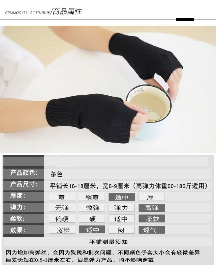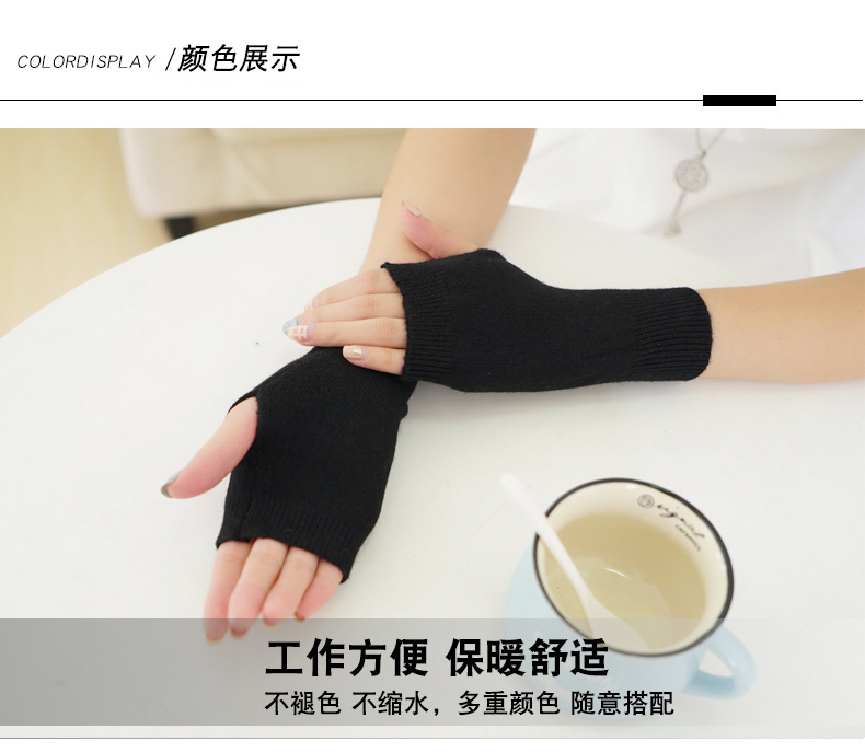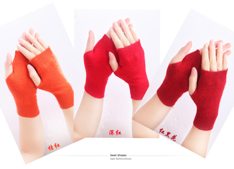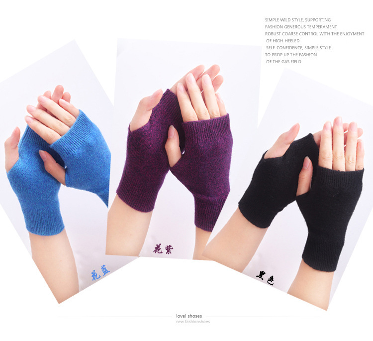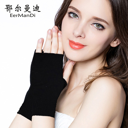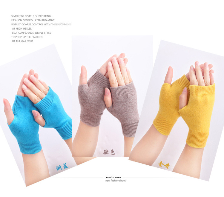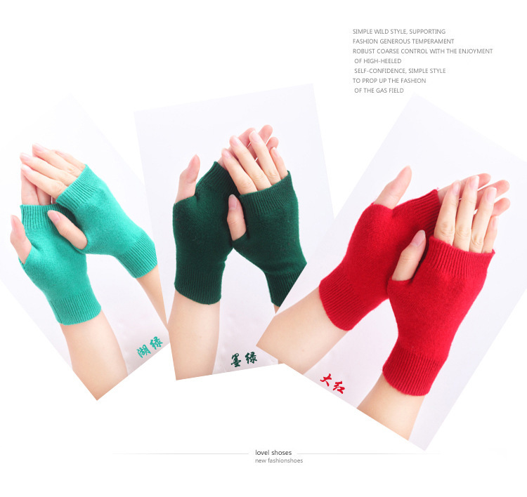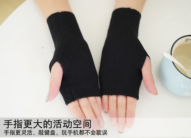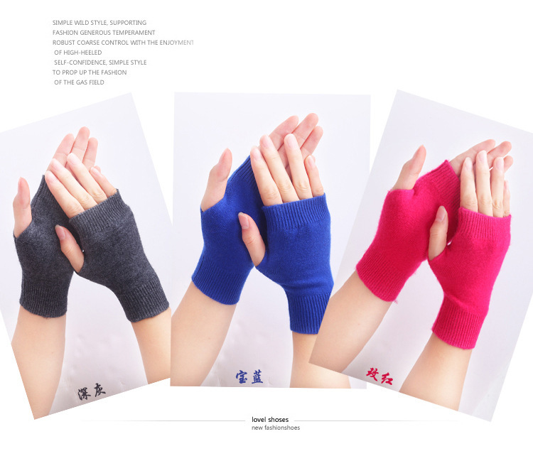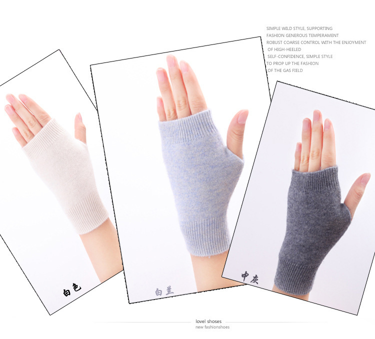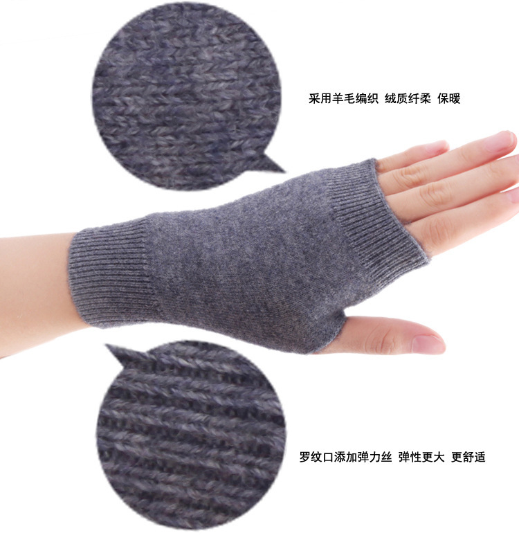 羊绒半指手套女冬短款保暖针织护腕男羊毛线漏露手指学生打字防寒