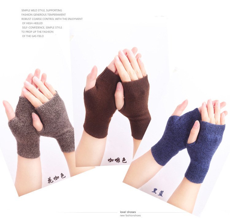 ウール半指男女通用秋冬手袋ニット糸短金露指学生が字を書く事務保温手袋