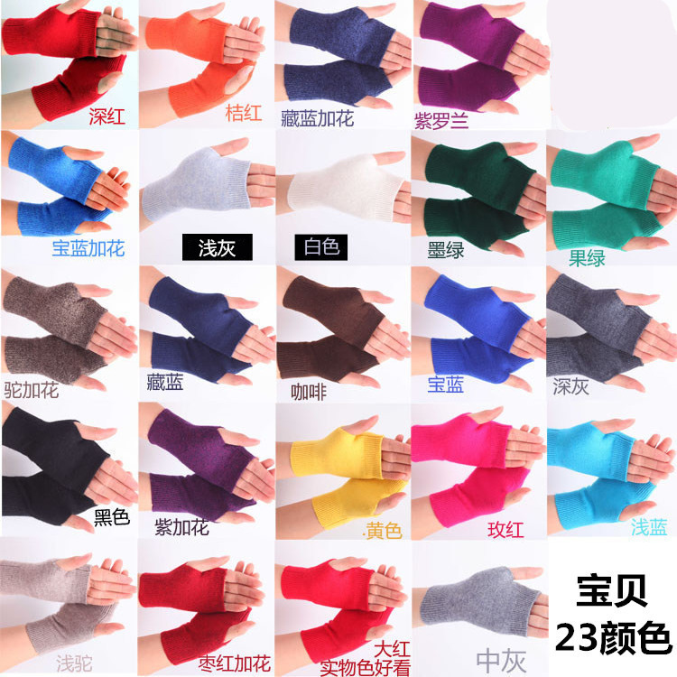 カシミヤの半分の指の手袋の女性の冬の短いタイプの保温のニットの腕の手袋の男性のウールの糸は指の学生を漏らしてタイプします。