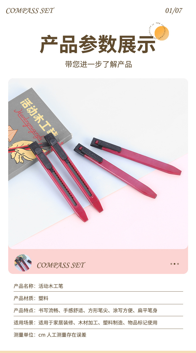 活動木工鉛筆線ツール平頭八角形太芯大工筆小学生diyマーク線