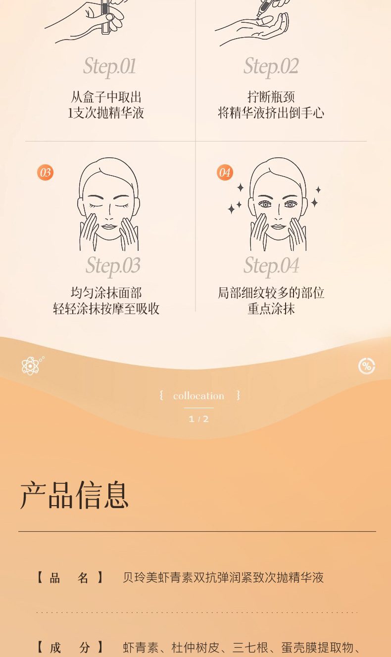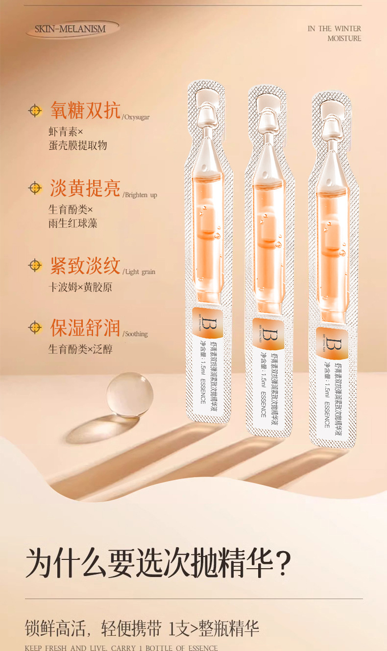 Beilingmei アスタキサンチン ダブル アンチエラスティック ファーミング セカンドパルス エッセンス ライトニング ライン 保湿 抗糖 抗酸化 黄ばみ防止 スキンケア