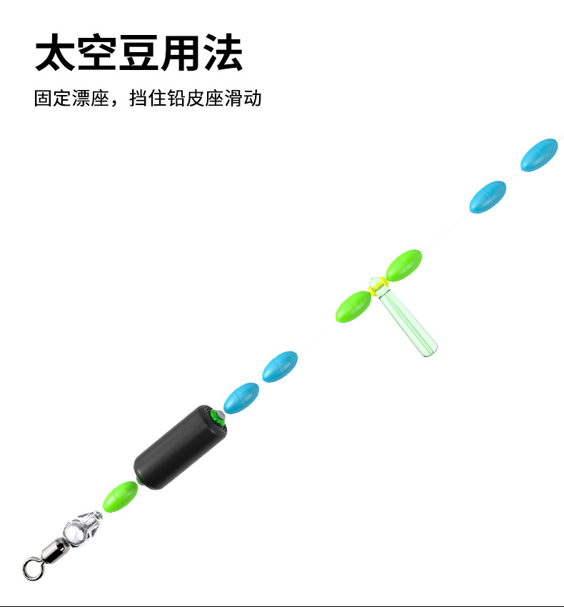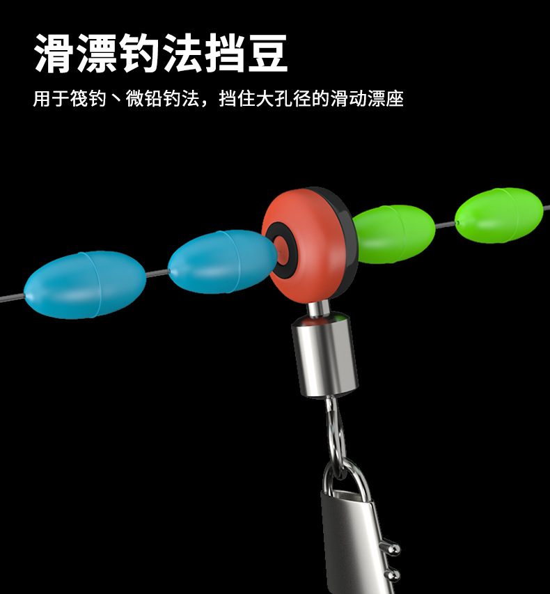 黑色橡胶太空豆圆柱形中号垂钓渔具组合野钓线组防缠豆钓鱼小配件