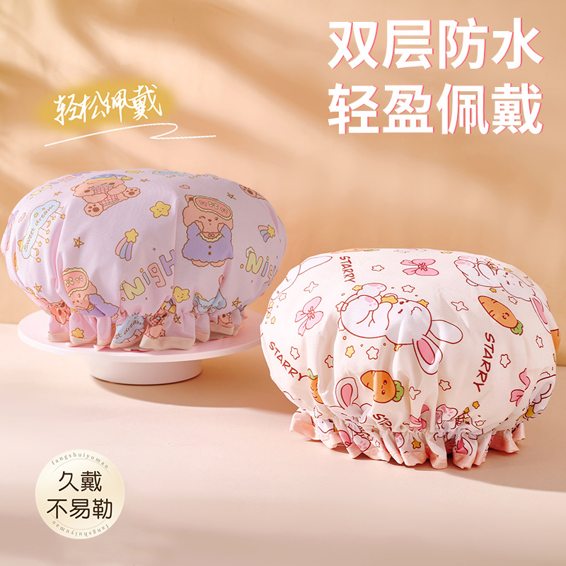 浴帽双层卡通防水洗澡帽新款家用防油烟成人加厚PEVA防水沐浴帽子