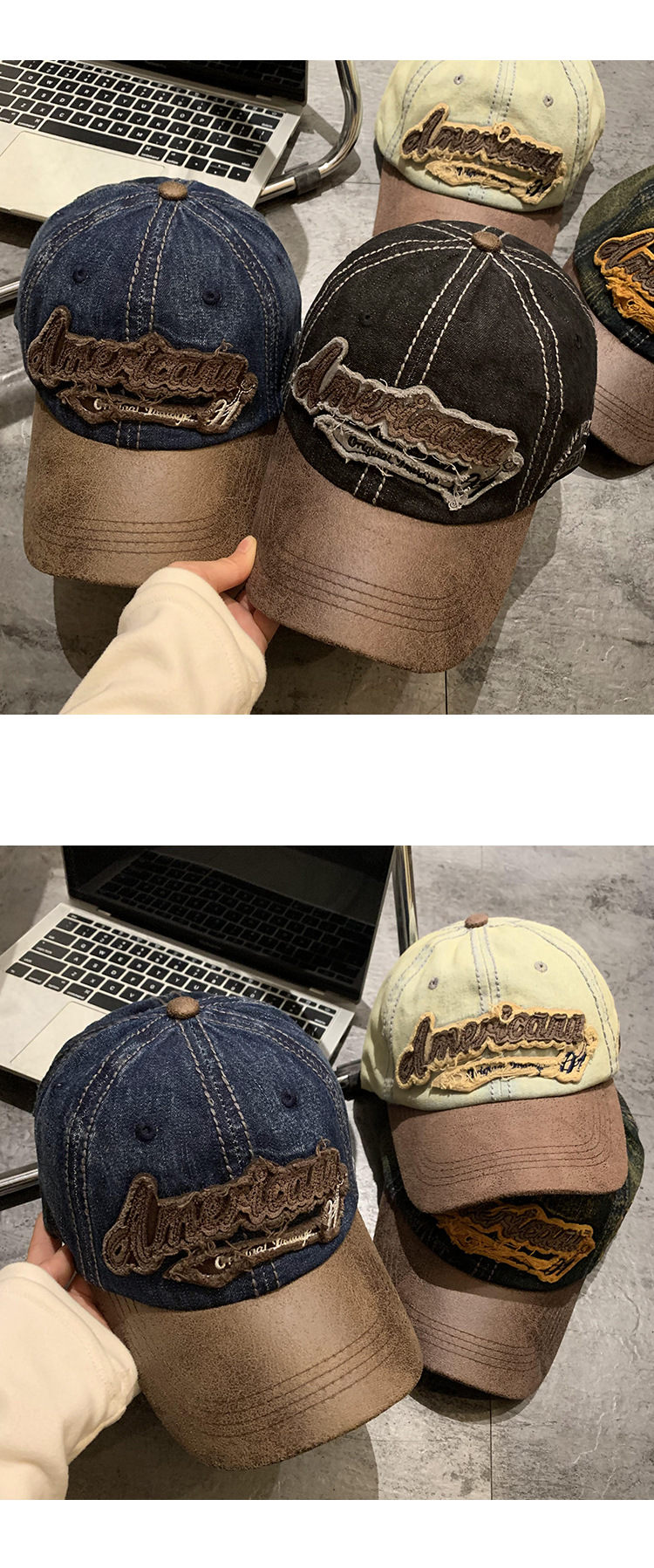 小衆衝突色デザイン鴨舌帽個性流行韓国系アウトドアレトロスポーツ帽子ソフトトップ野球帽男女