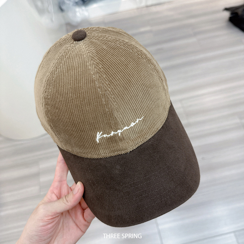 棒球帽女秋冬百搭保暖条绒软顶鸭舌帽显瘦加宽加大休闲拼色帽子潮