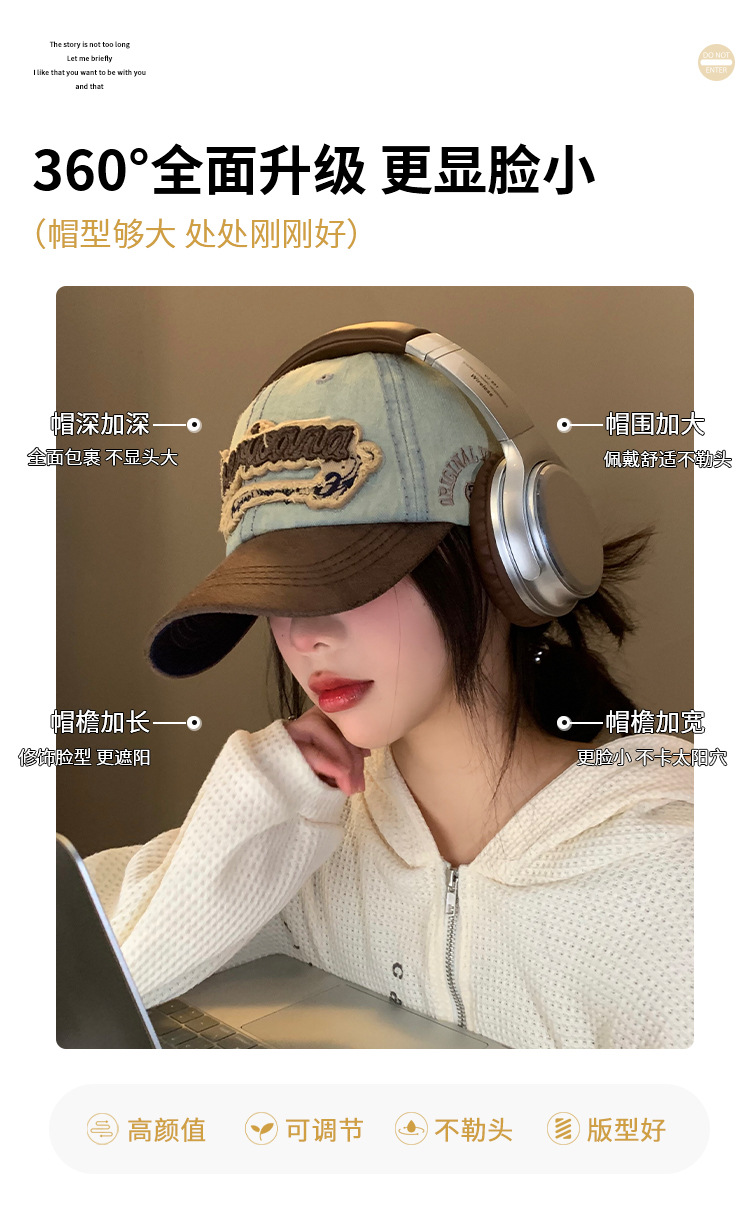 原创韩系ins复古字母刺绣棒球帽女显脸小百搭遮阳防晒鸭舌帽爆款