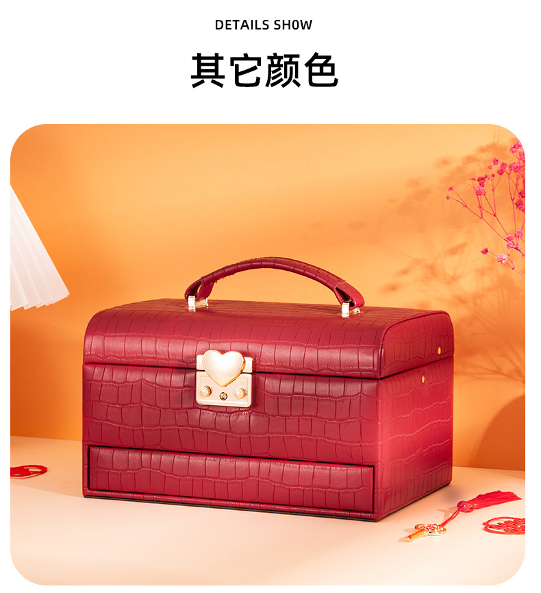 厂家高端精致皮质首饰盒结婚嫁便携式带锁项链戒指珠宝饰品收纳盒