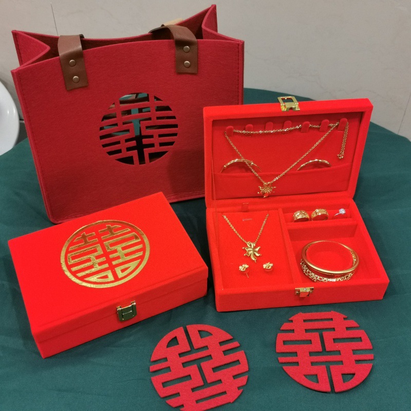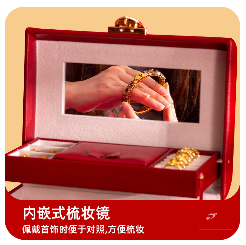 放黄金的订婚三金彩礼结婚首饰盒陪嫁聘礼盒提亲五金新娘嫁妆礼盒