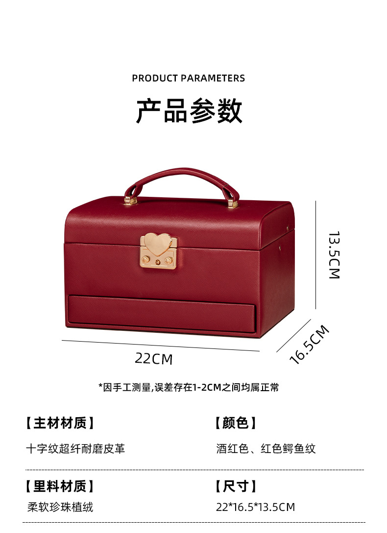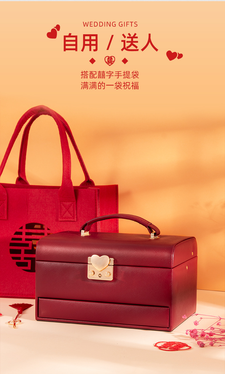 ジュエリーボックス 赤色 結婚式 婚約 結婚式用 ハードウェアギフトボックス 収納 軽奢 高級ジュエリーボックス ジュエリー収納ボックス
