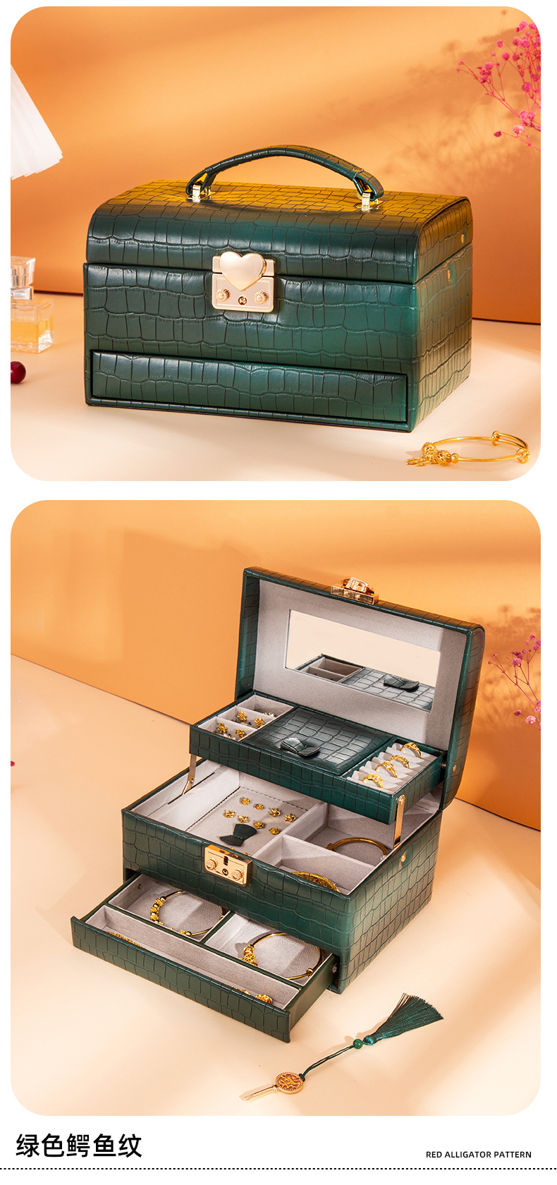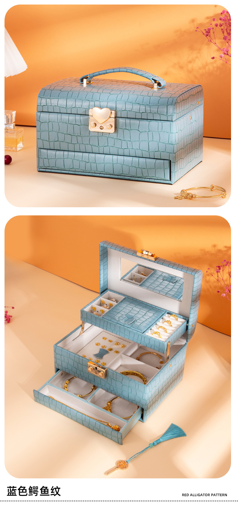 高級大容量ジュエリー収納ボックス、越境ジュエリーボックス、ジュエリーネックレスリング収納ボックス、在庫あり