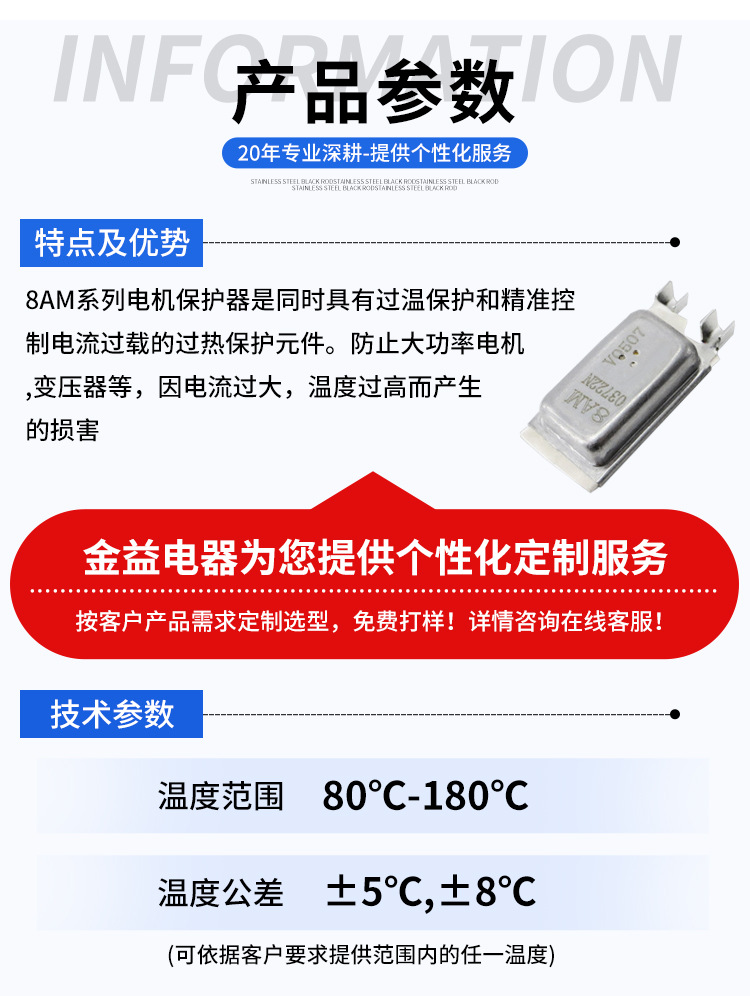 8CMサーマルプロテクターは、センサータ2-16Aモーターの50-180度温度制御スイッチに代わるもので、高精度の温度制御を実現します。