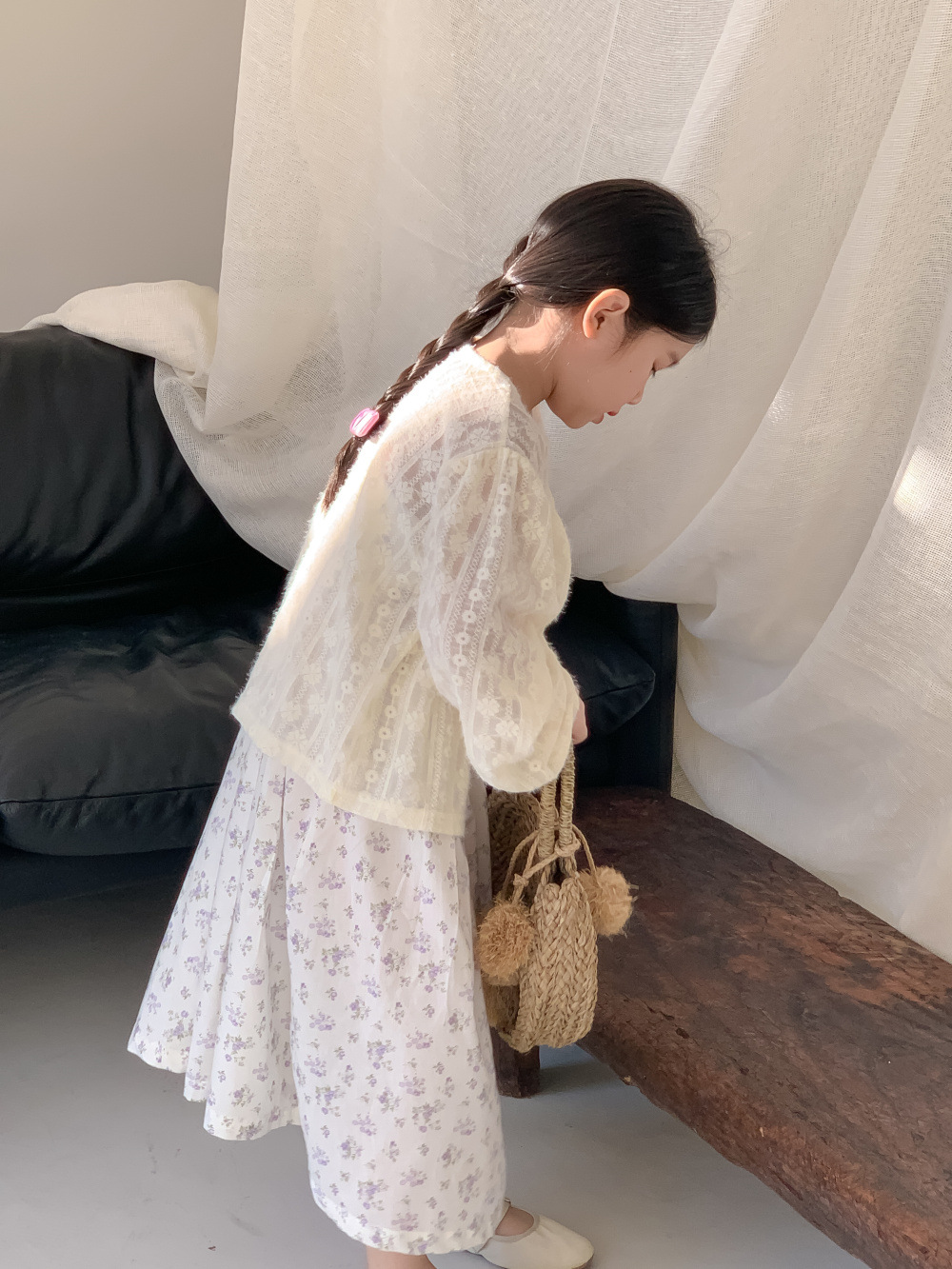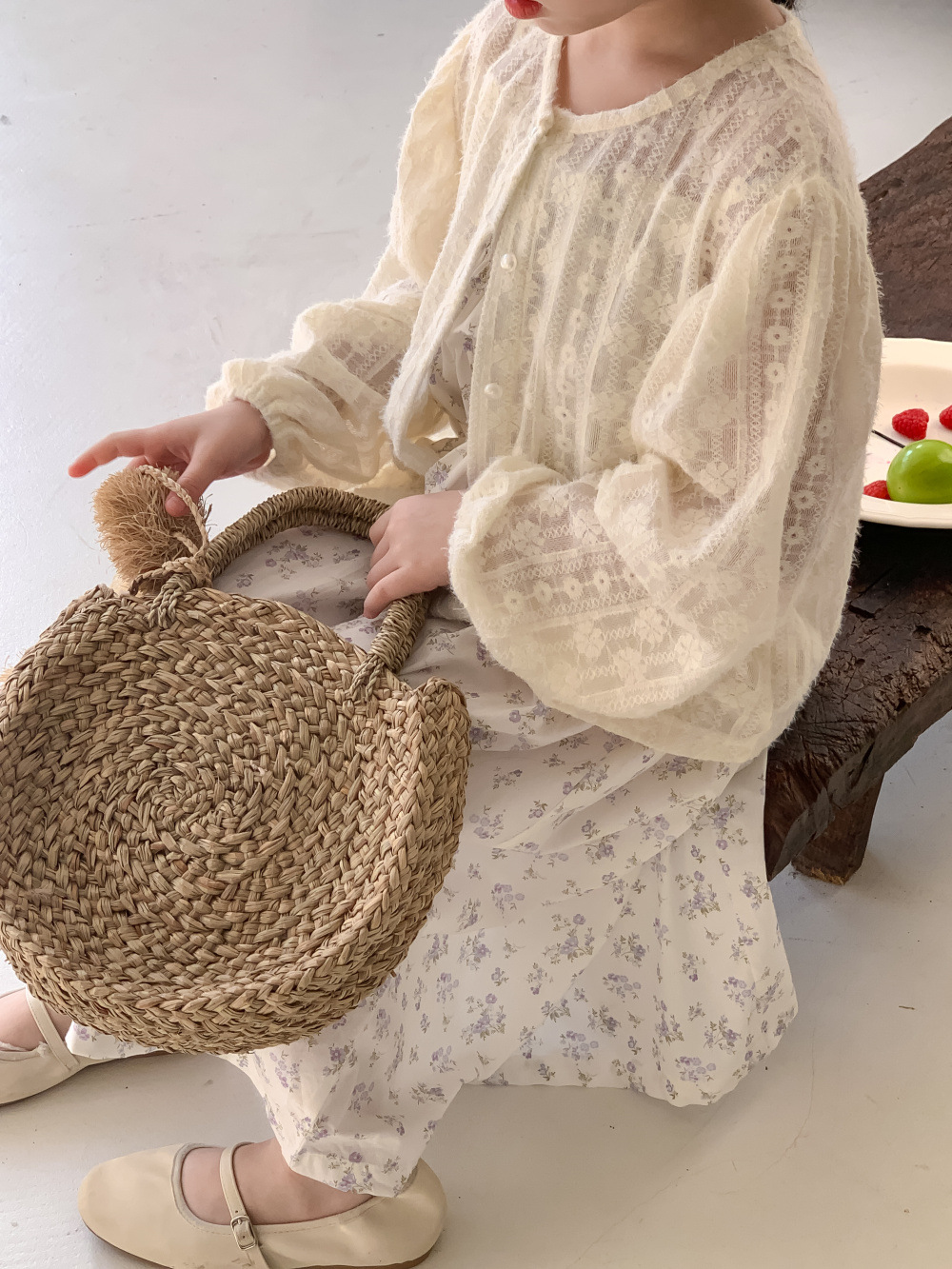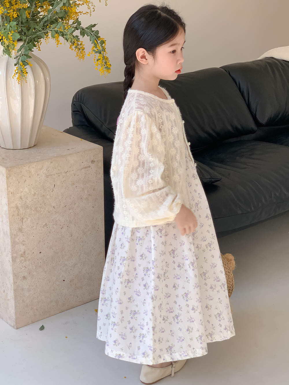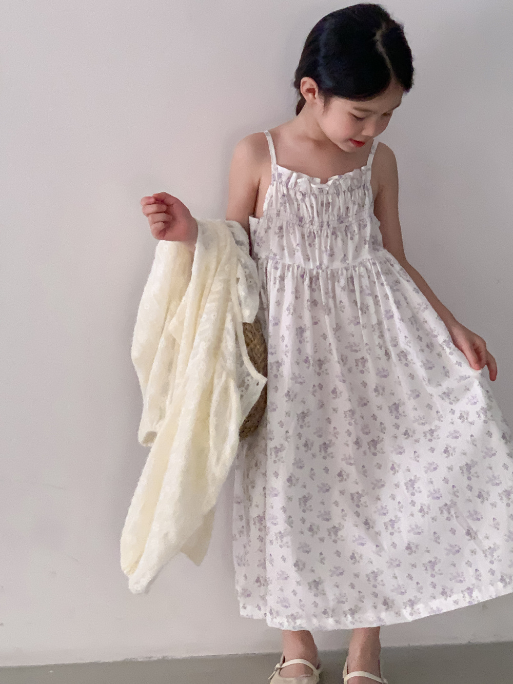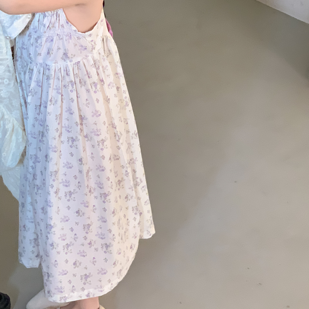 紫の花柄サスペンダースカート,同じスタイルのレースカーディガンジャケット