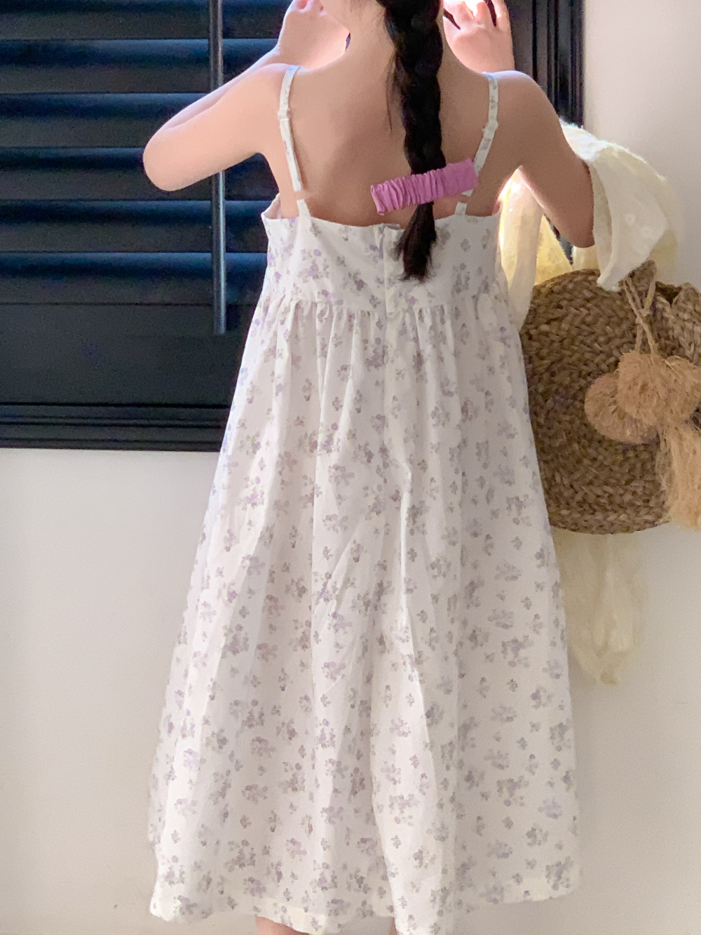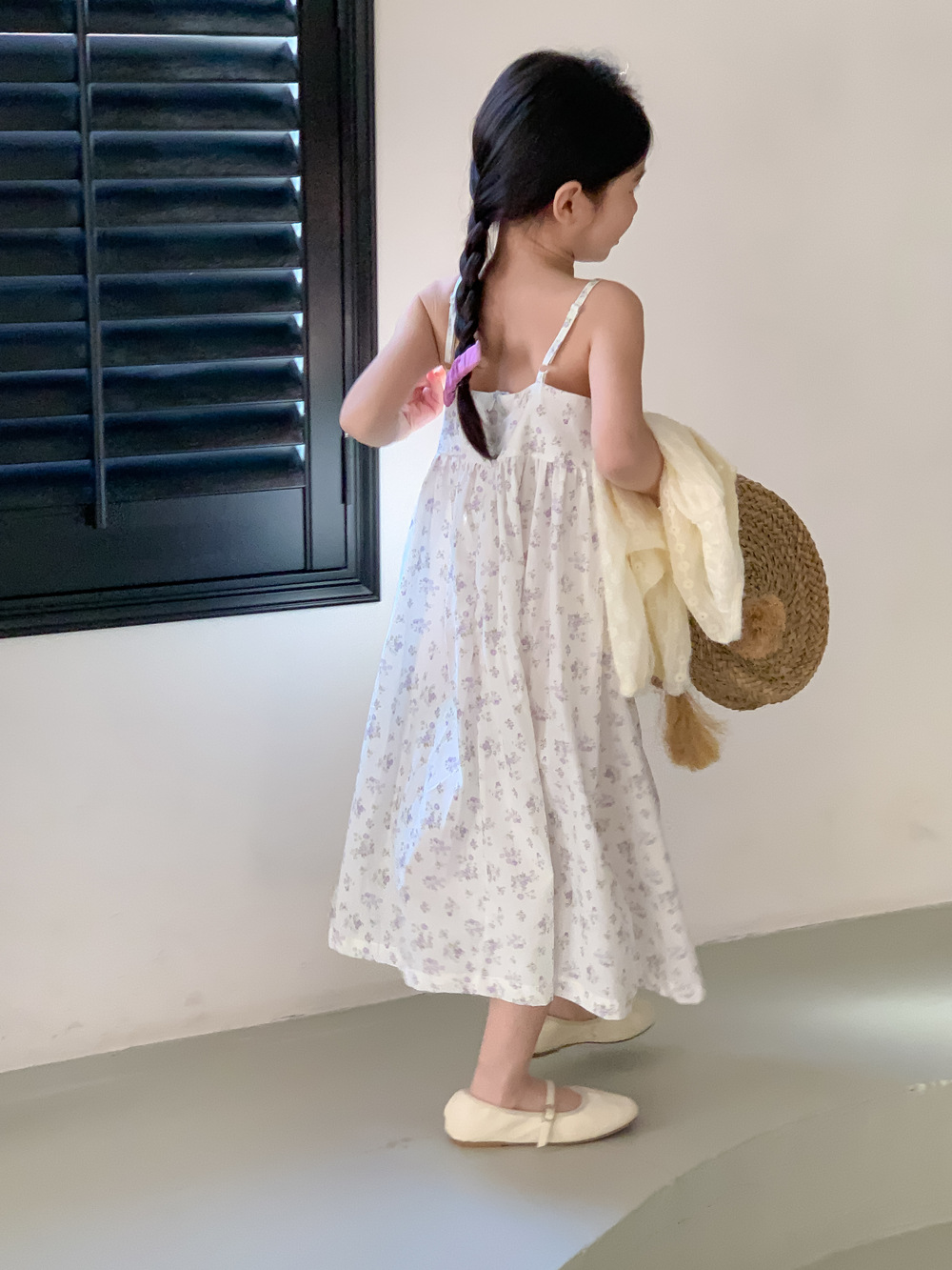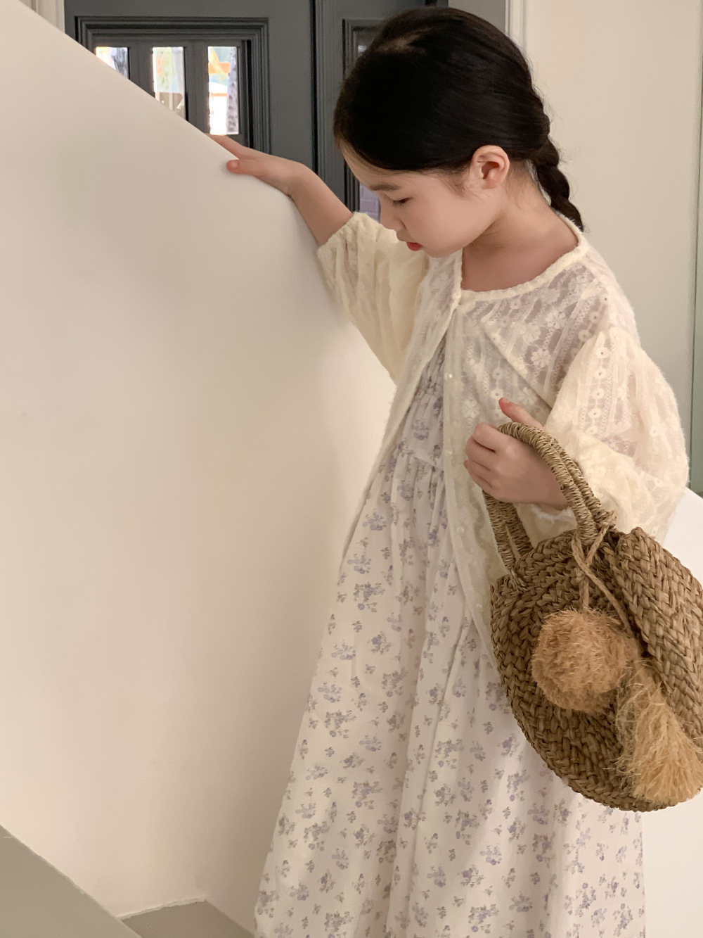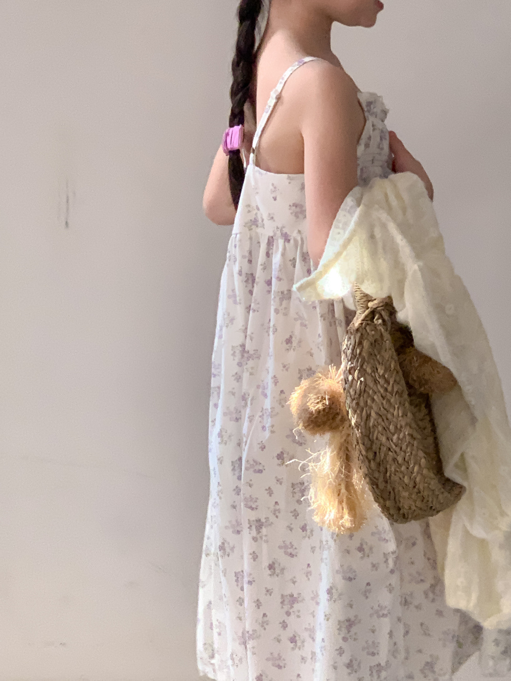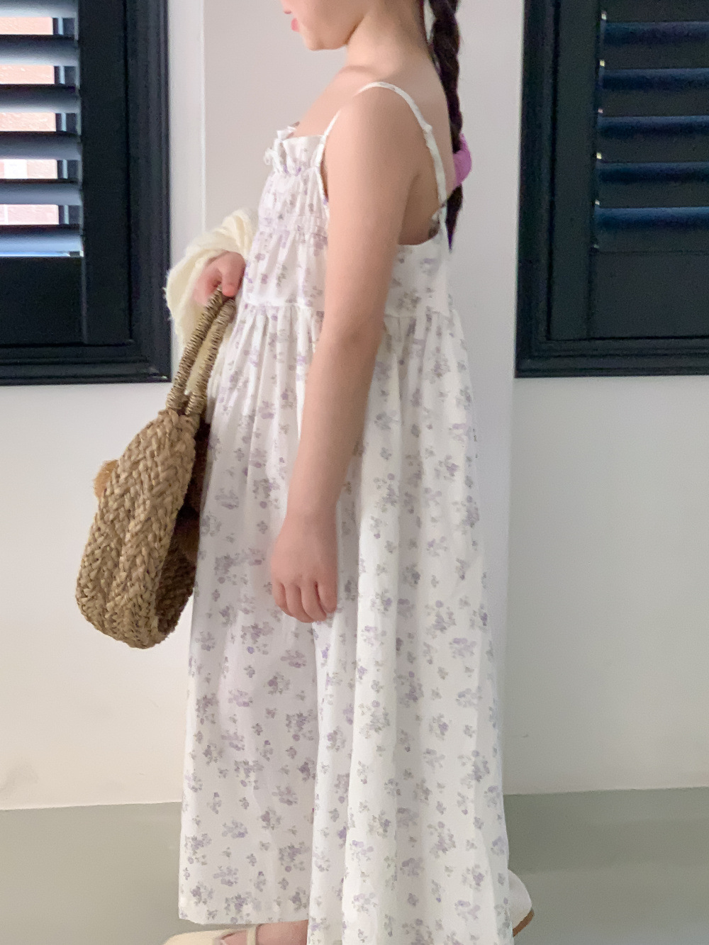 紫の花柄サスペンダースカート,同じスタイルのレースカーディガンジャケット