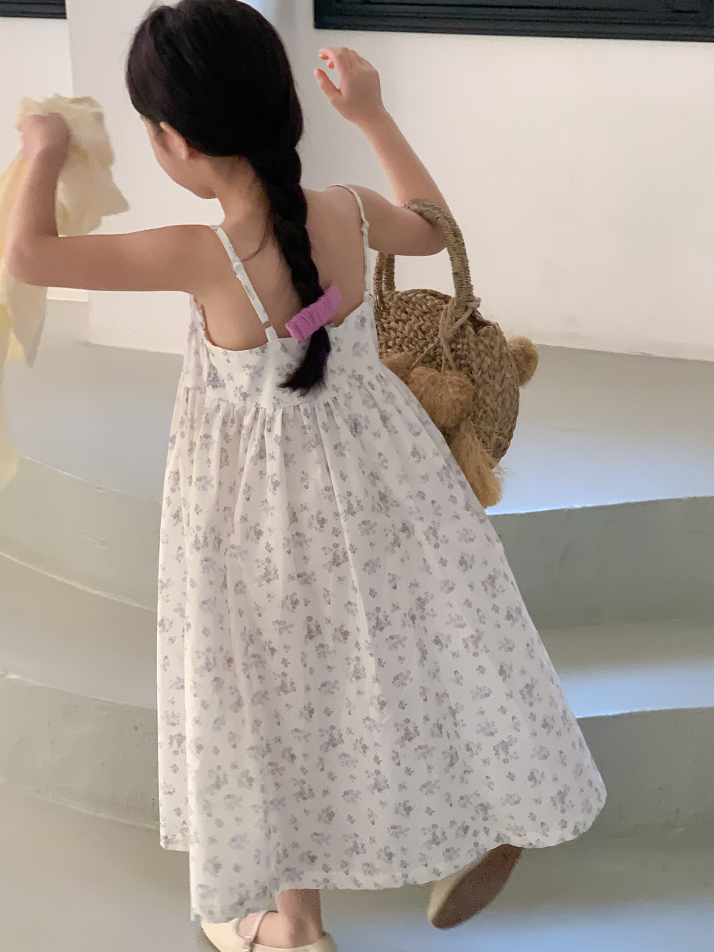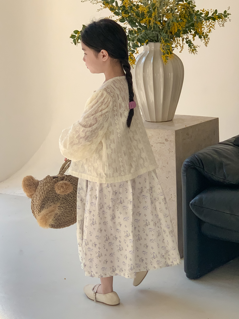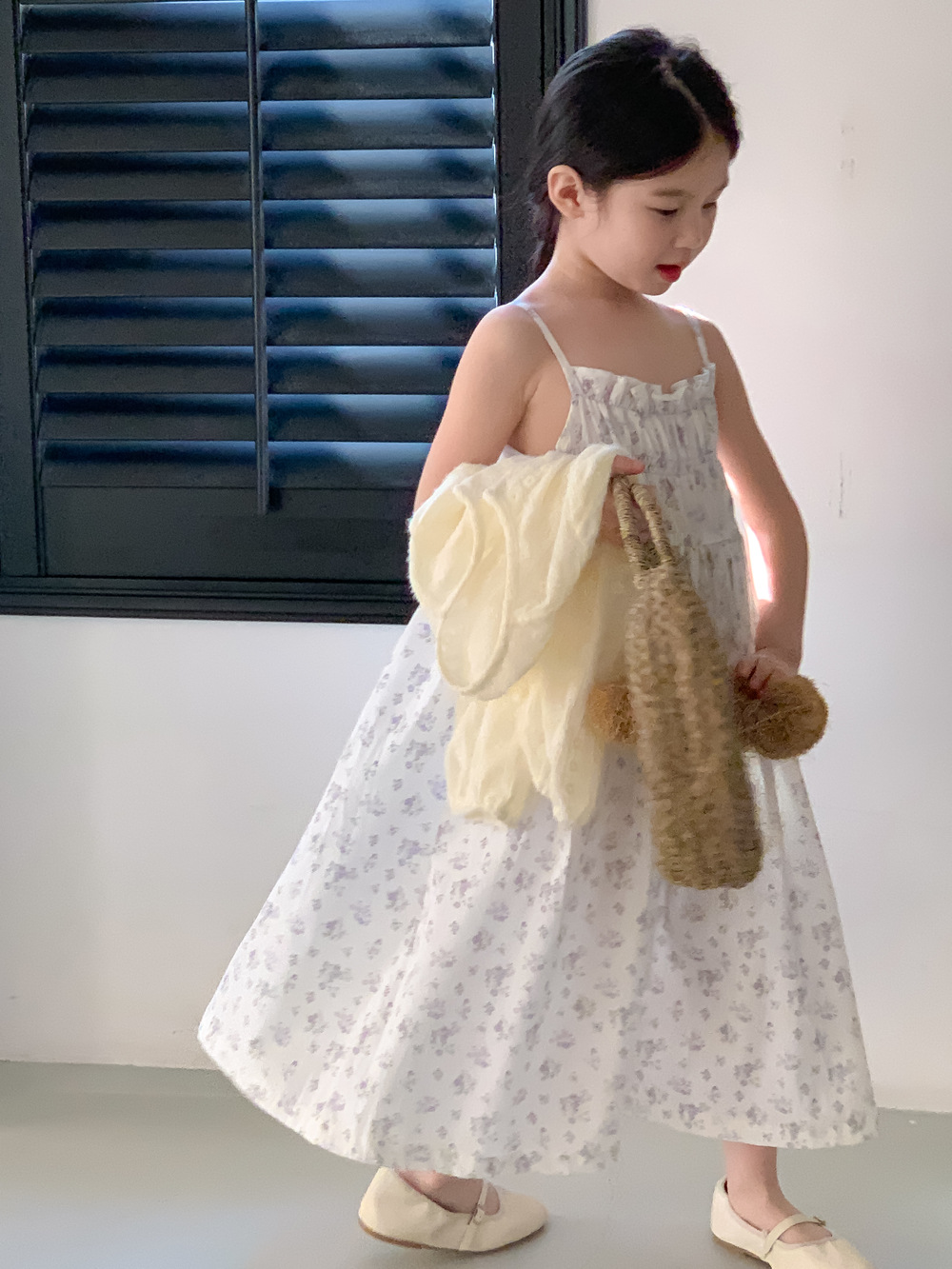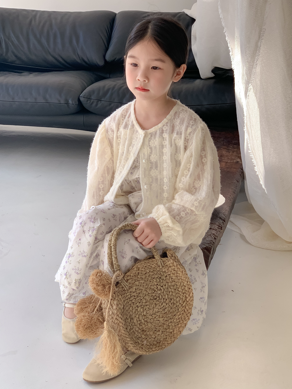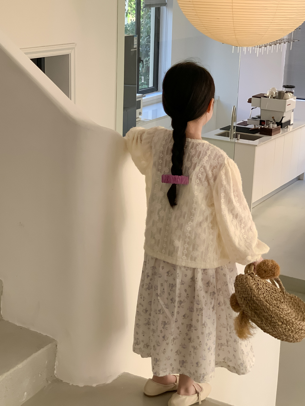 紫の花柄サスペンダースカート,同じスタイルのレースカーディガンジャケット