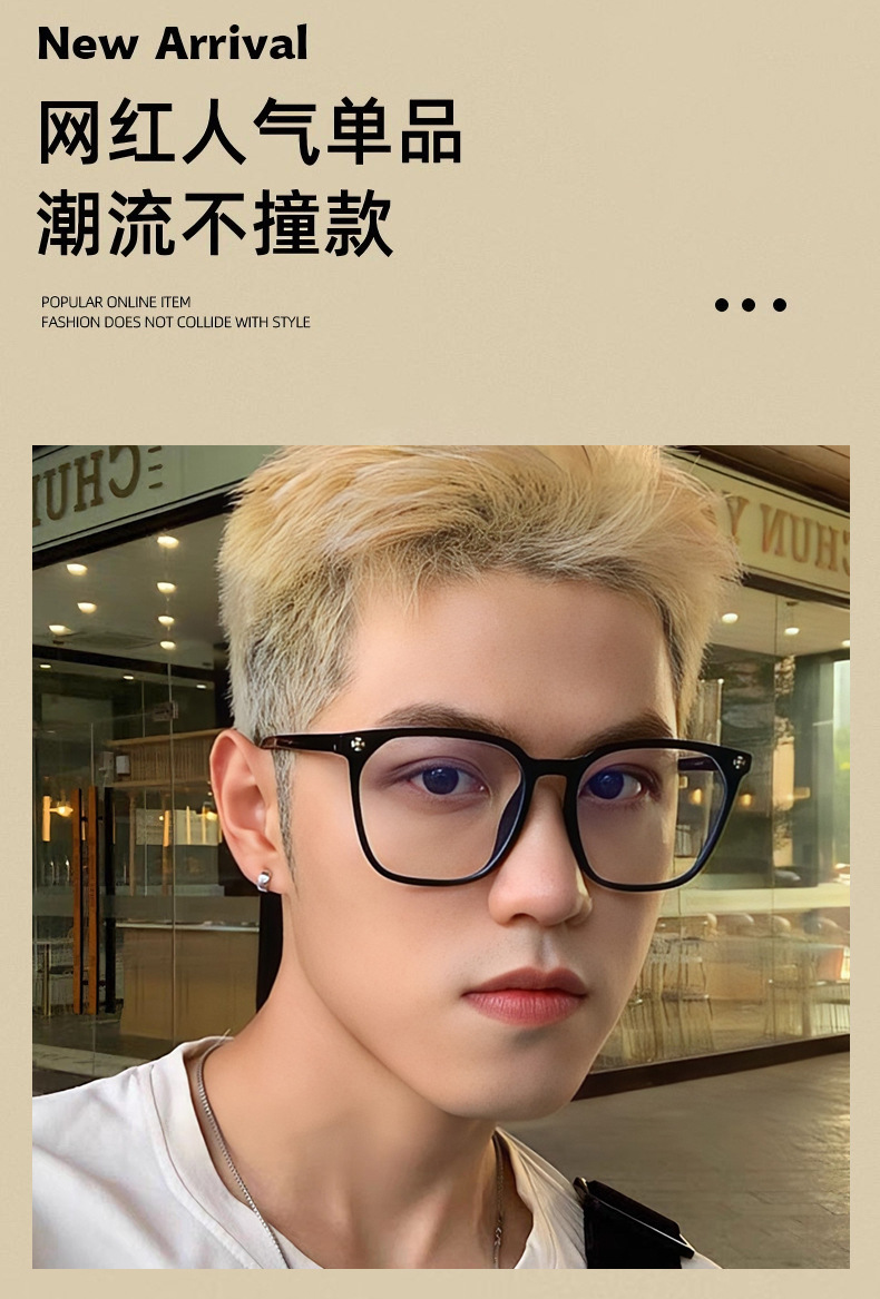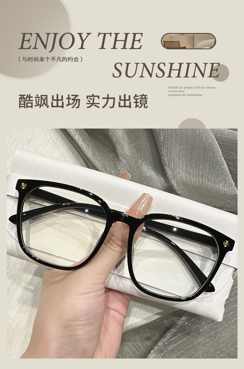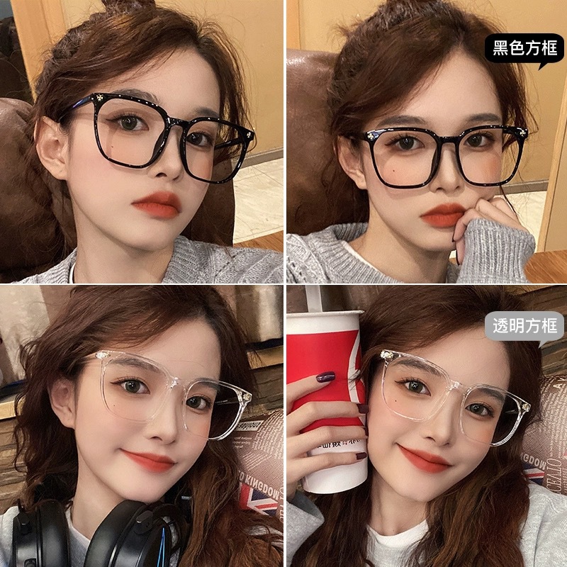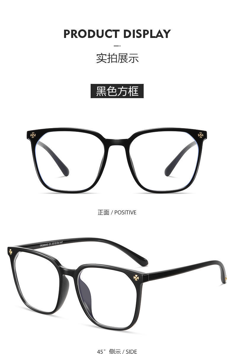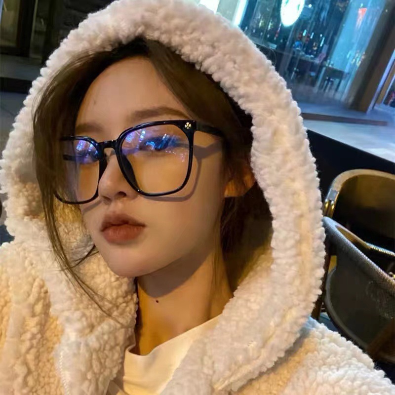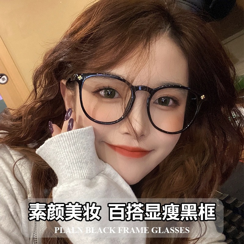 新品insフレームトレンドブラック大枠フラットミラー男レトロ個性フルフレーム女性アンチブルーライト震え音メガネ