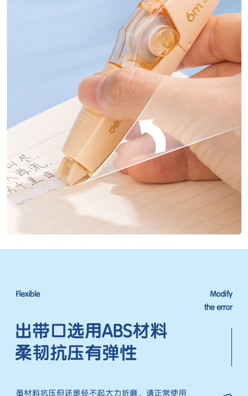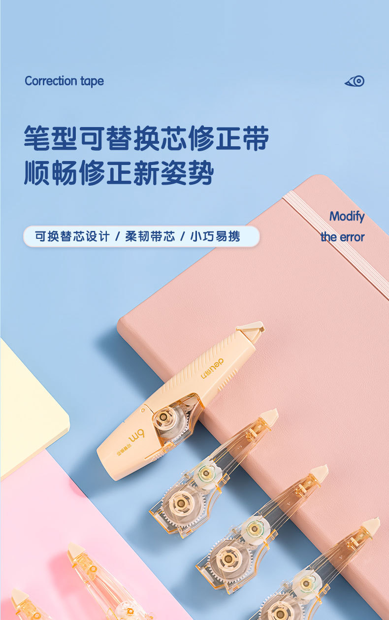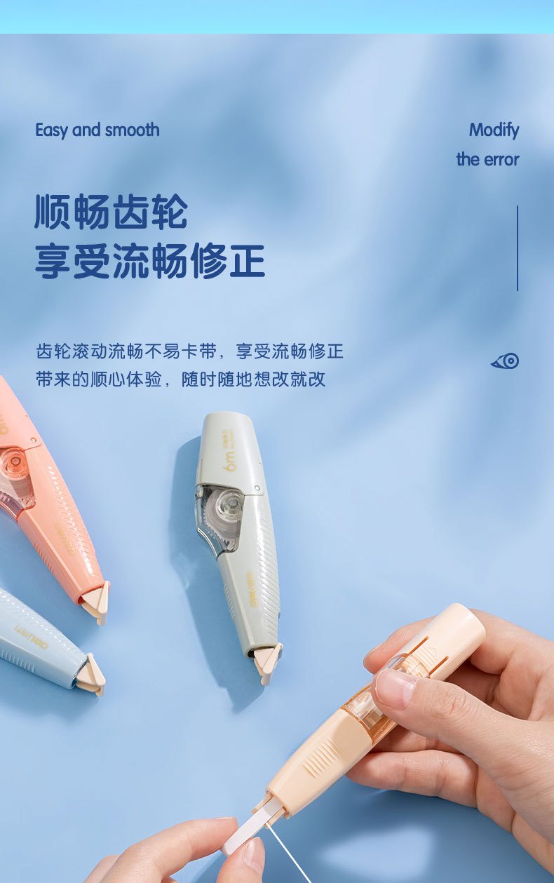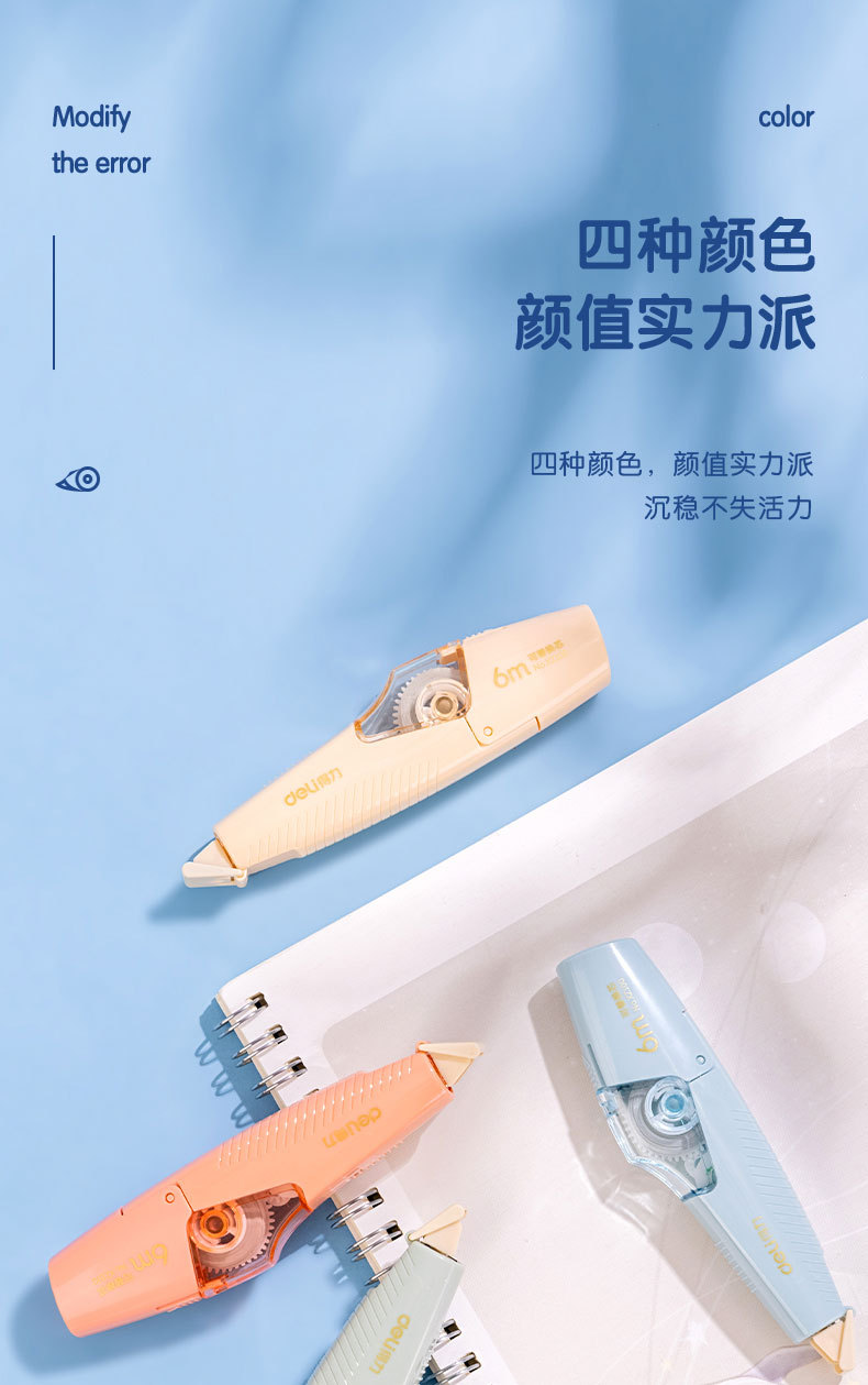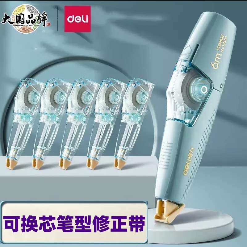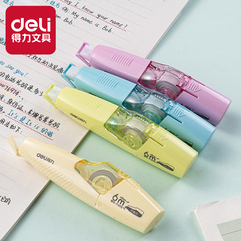 得力71461笔形修正带可换芯便携顺滑涂改带6m高颜值学生改正带