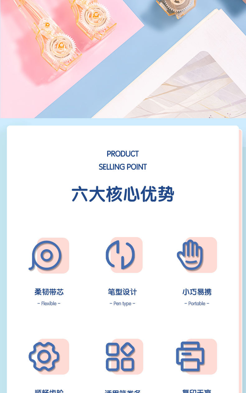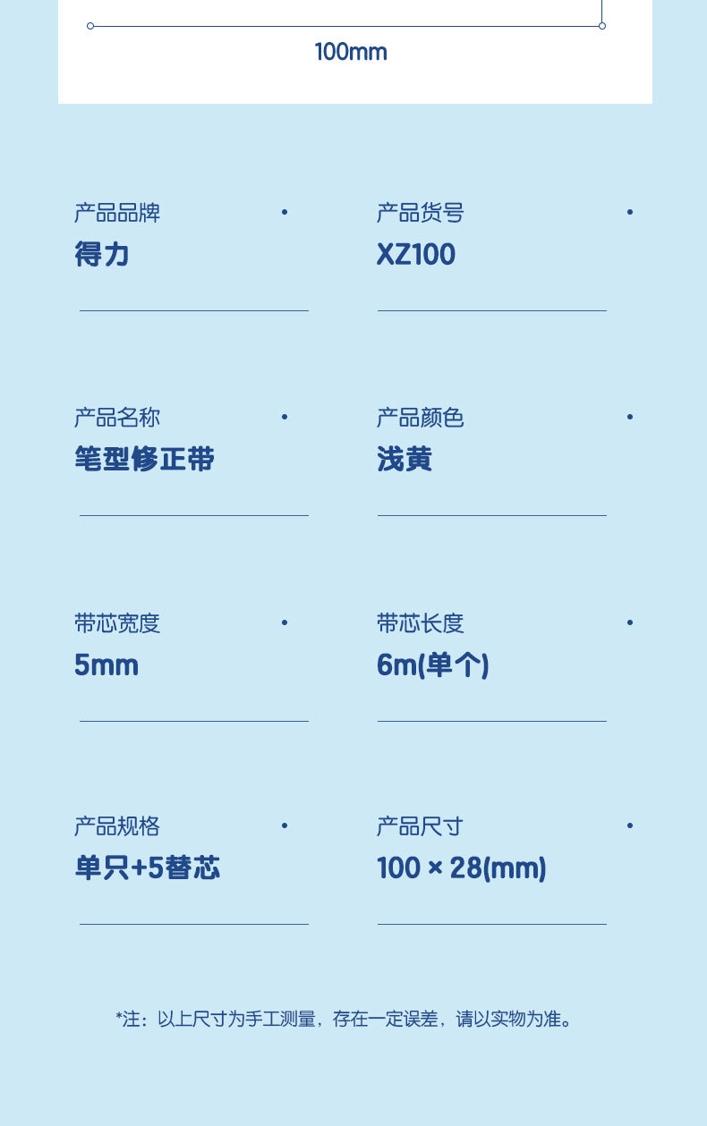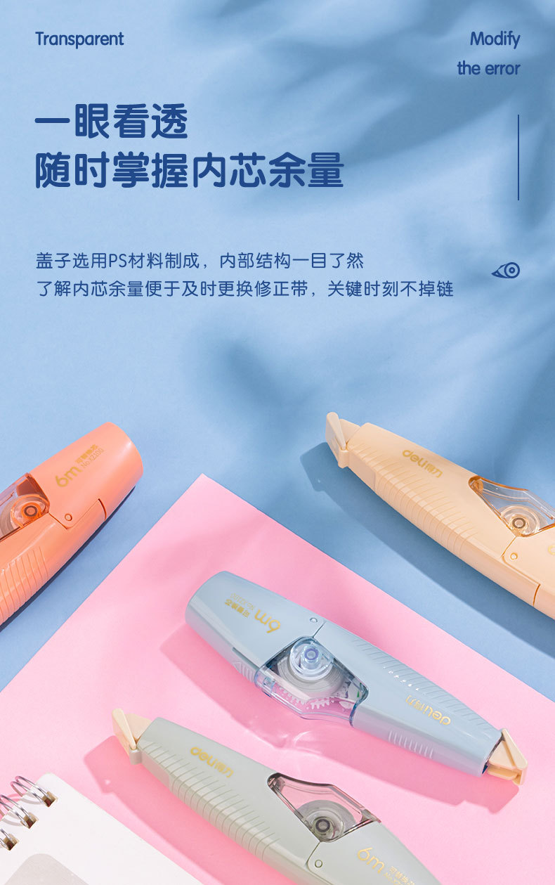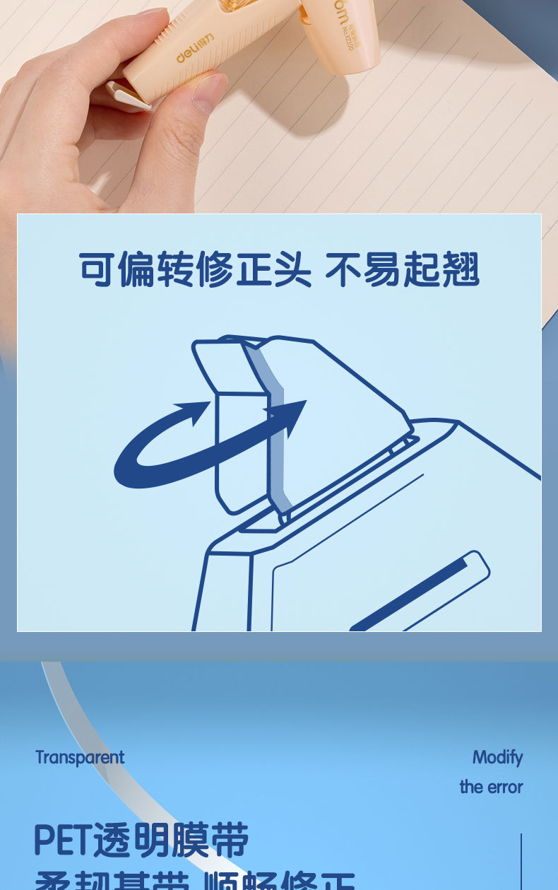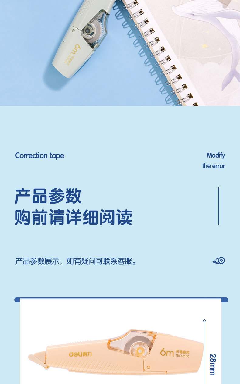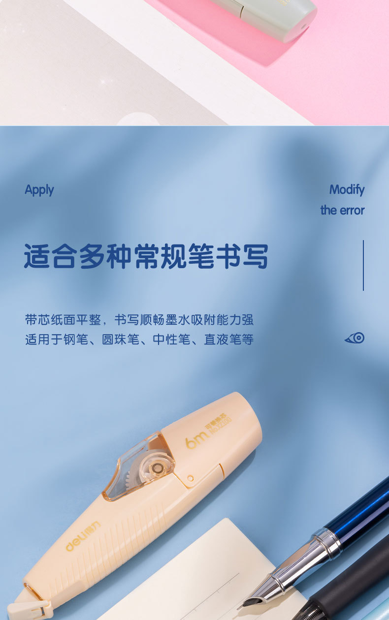 得力71461笔形修正带可换芯便携顺滑涂改带6m高颜值学生改正带