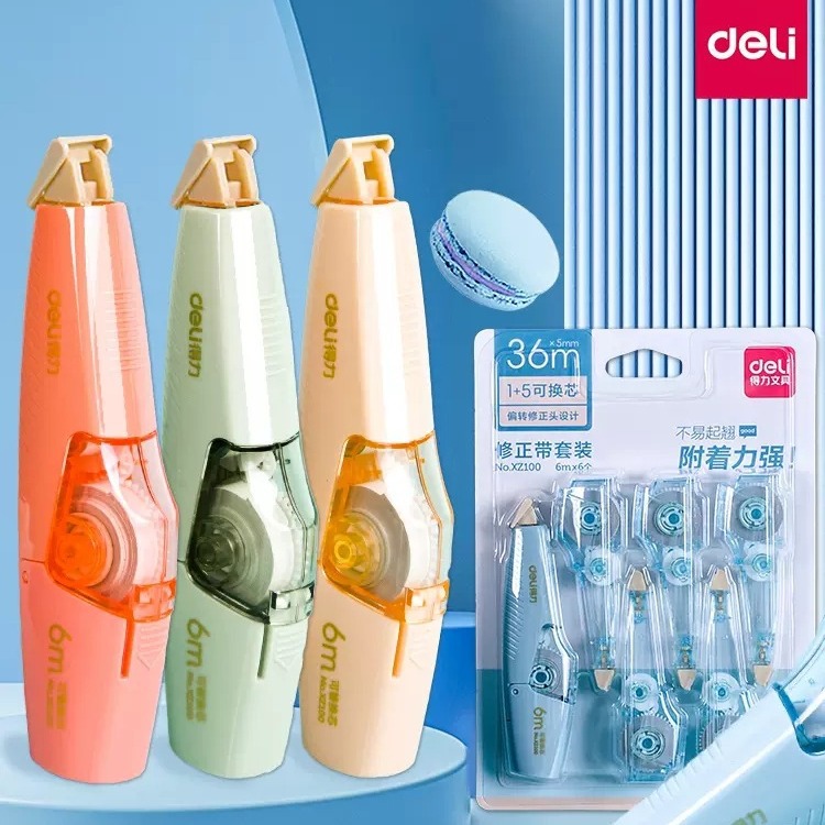 1セットのデリペン型修正テープセットXZ100修正テープ学生用修正テープ5mm6m交換芯付き