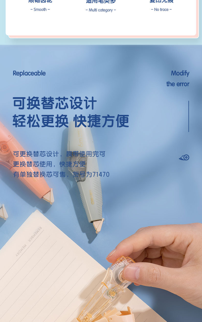 交換可能なコア修正テープは大容量で学生専用の修正テープを持っています。