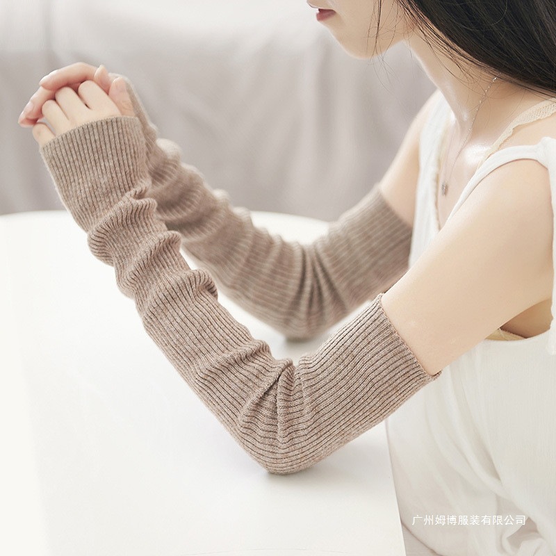 カシミヤ腕カバー袖カバー女性秋冬長型半指手袋ウール糸ニット腕偽袖保温厚