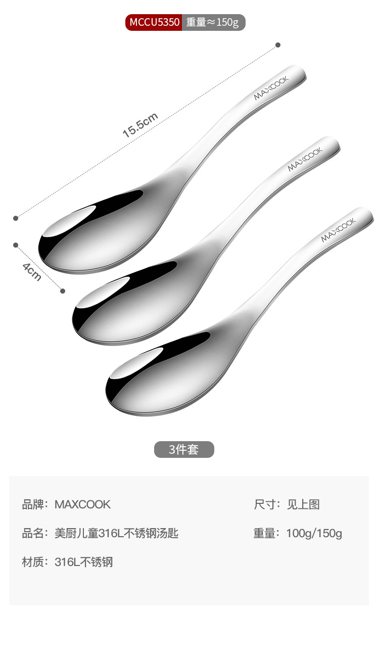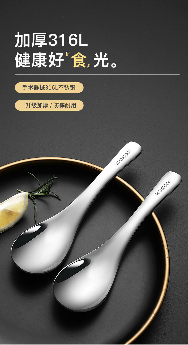 Maxクック美厨2セット316Lステンレススプーンを大きくして、スプーンを厚くします。