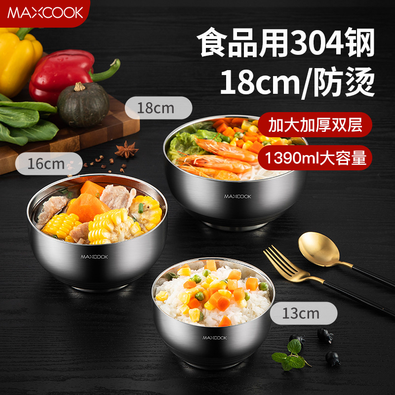 Meichu 304 ステンレス鋼ボウル大型スープボウル二重層断熱食器ヌードルボウル 18 センチメートル MCWA9624