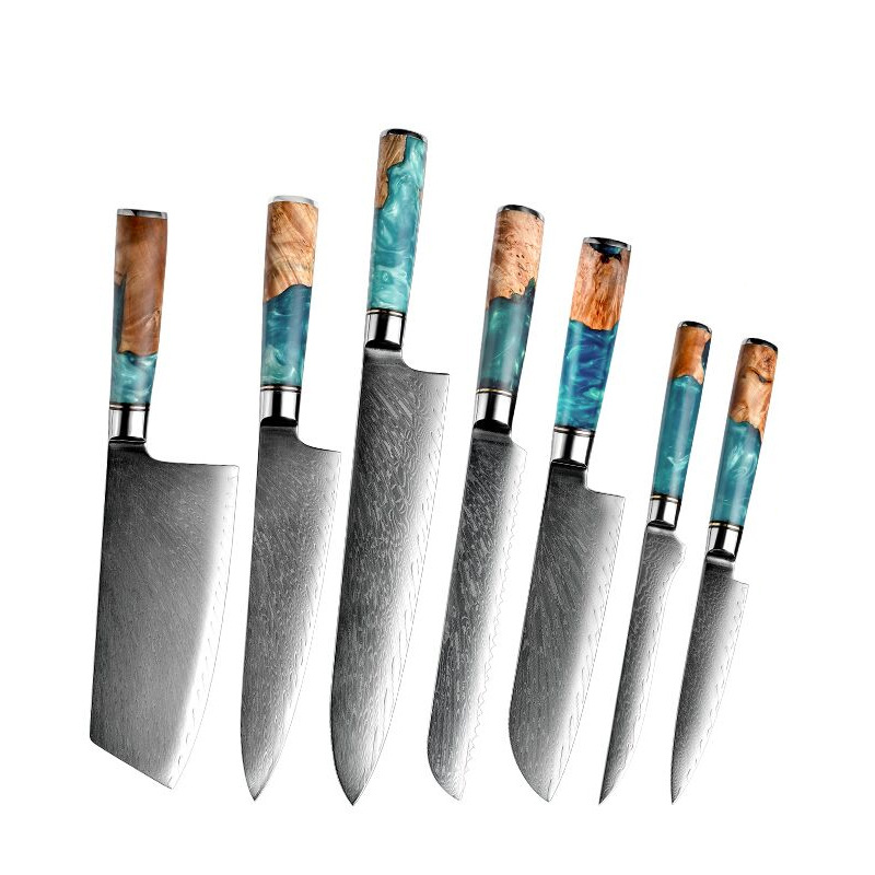 陽江彩木柄67層ダマスカス鋼刀キッチン刃物セット家庭用肉切り包丁シェフ刀