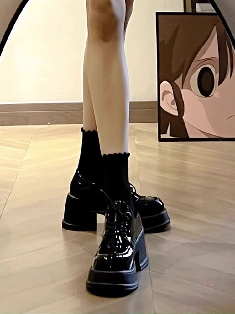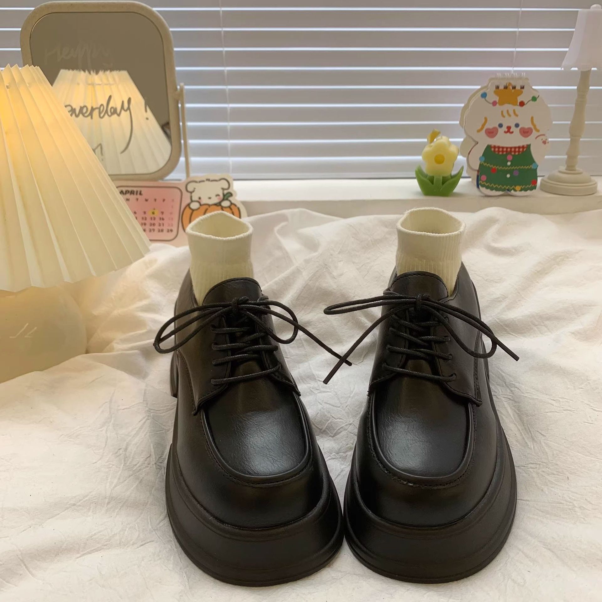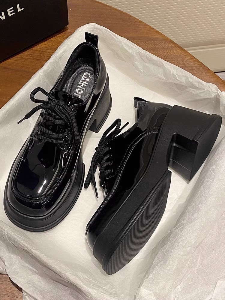 メアリージェーンシューズ厚底2025春小さな革靴新しい高められた黒のシングルシューズ学生多用途プラットフォーム婦人靴