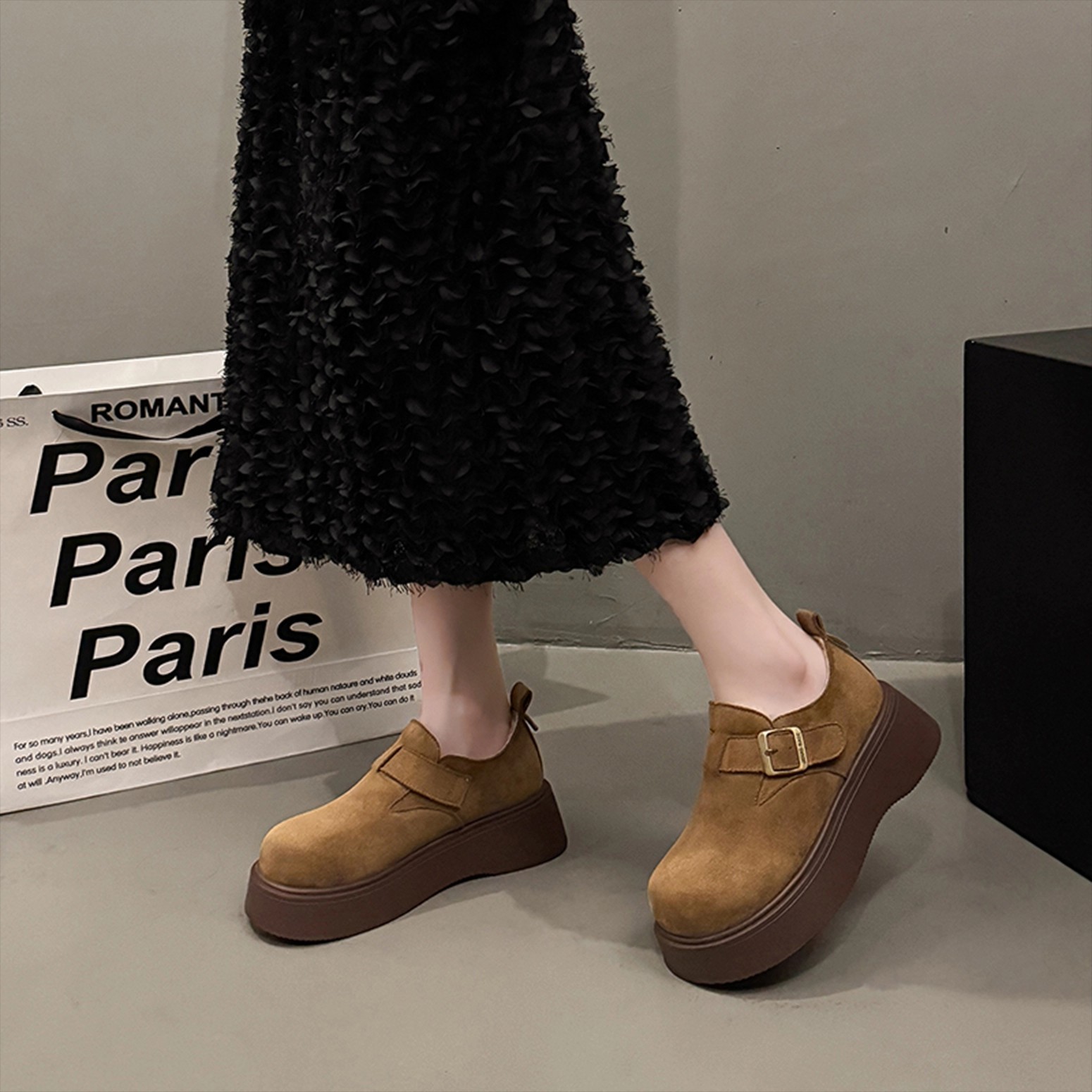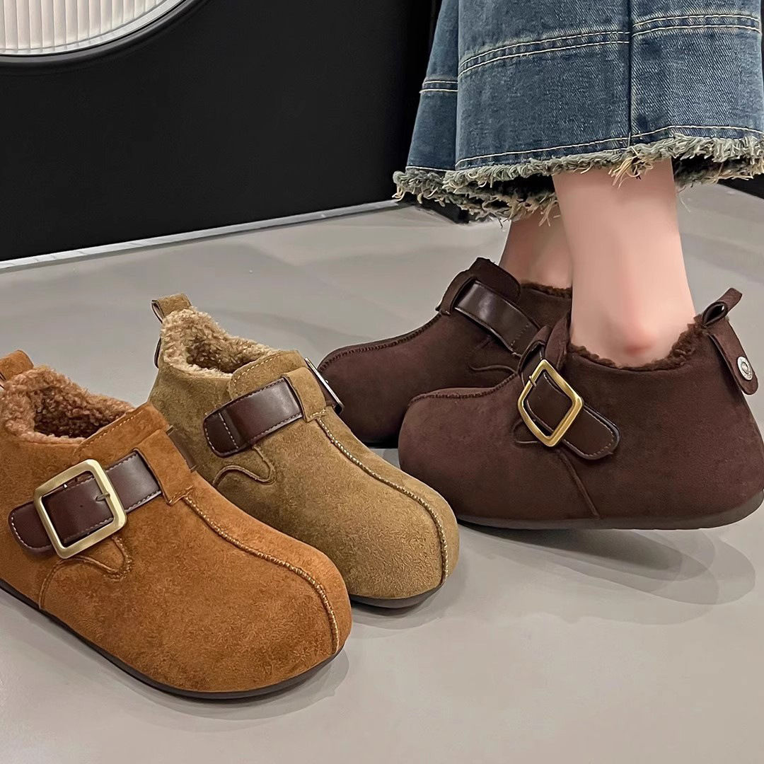 厚底加绒女鞋子雪地靴软底鞋乐福鞋2025新款冬季薄绒全包勃肯鞋女
