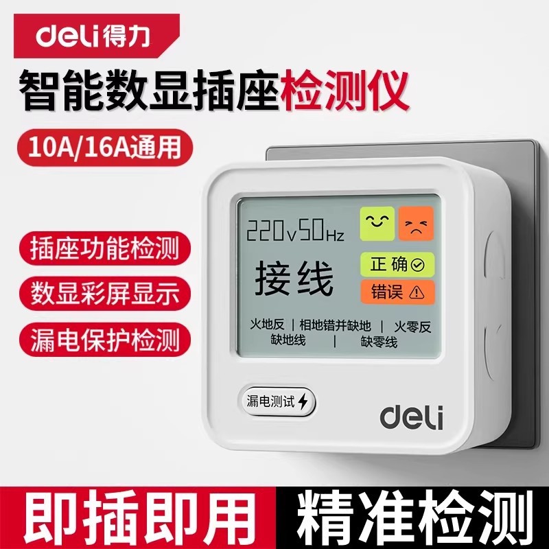 得力漏电检测仪验电器相位检测仪电路测电插座电源检测器专业试电