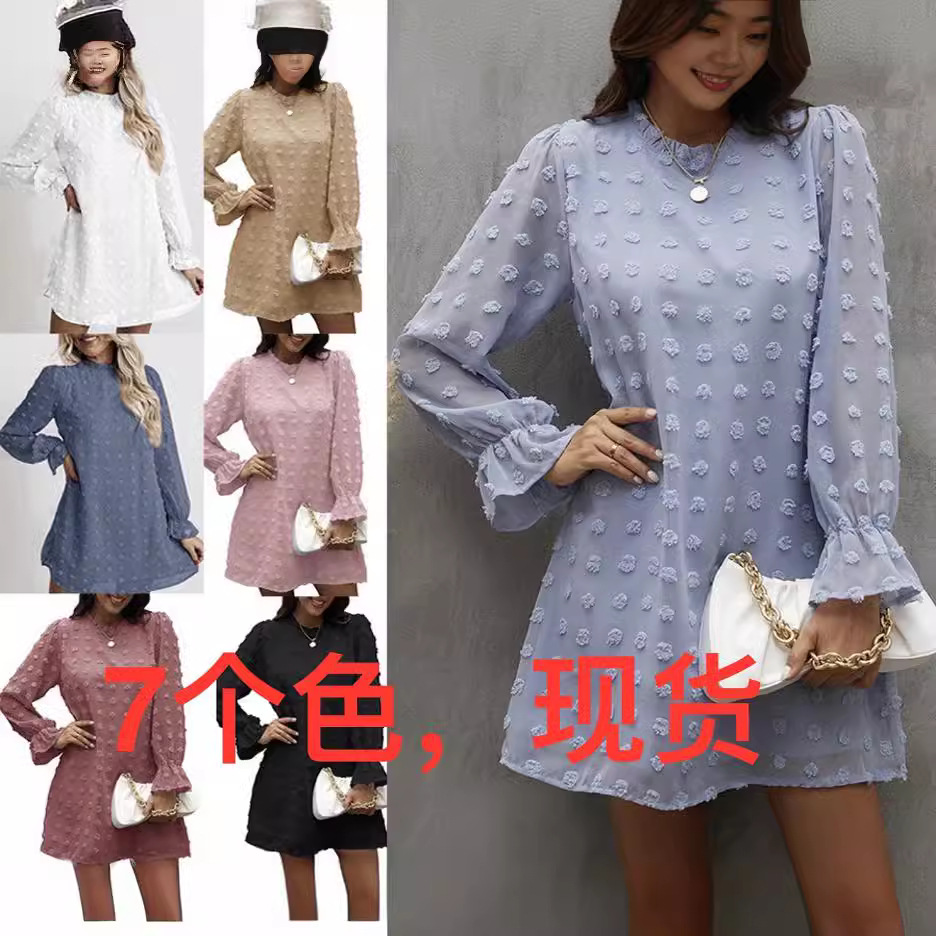 2025 春夏ヨーロッパとアメリカの国境を越えた貿易女性の新しいアマゾンパフ長袖シフォンジャカードボトリングドレス
