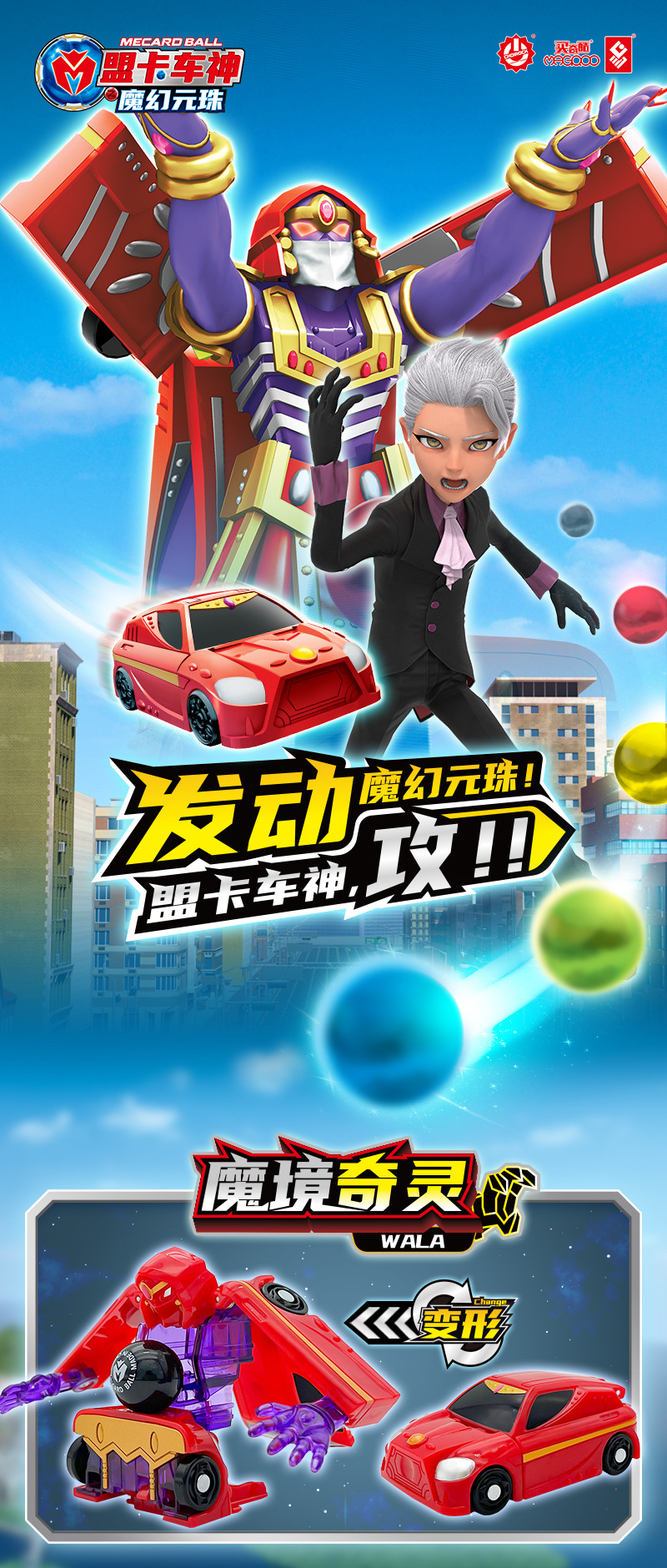 正版盟卡车神之魔幻元珠3玩具圆珠机神变形萌卡猩红毒蝎魔境奇灵