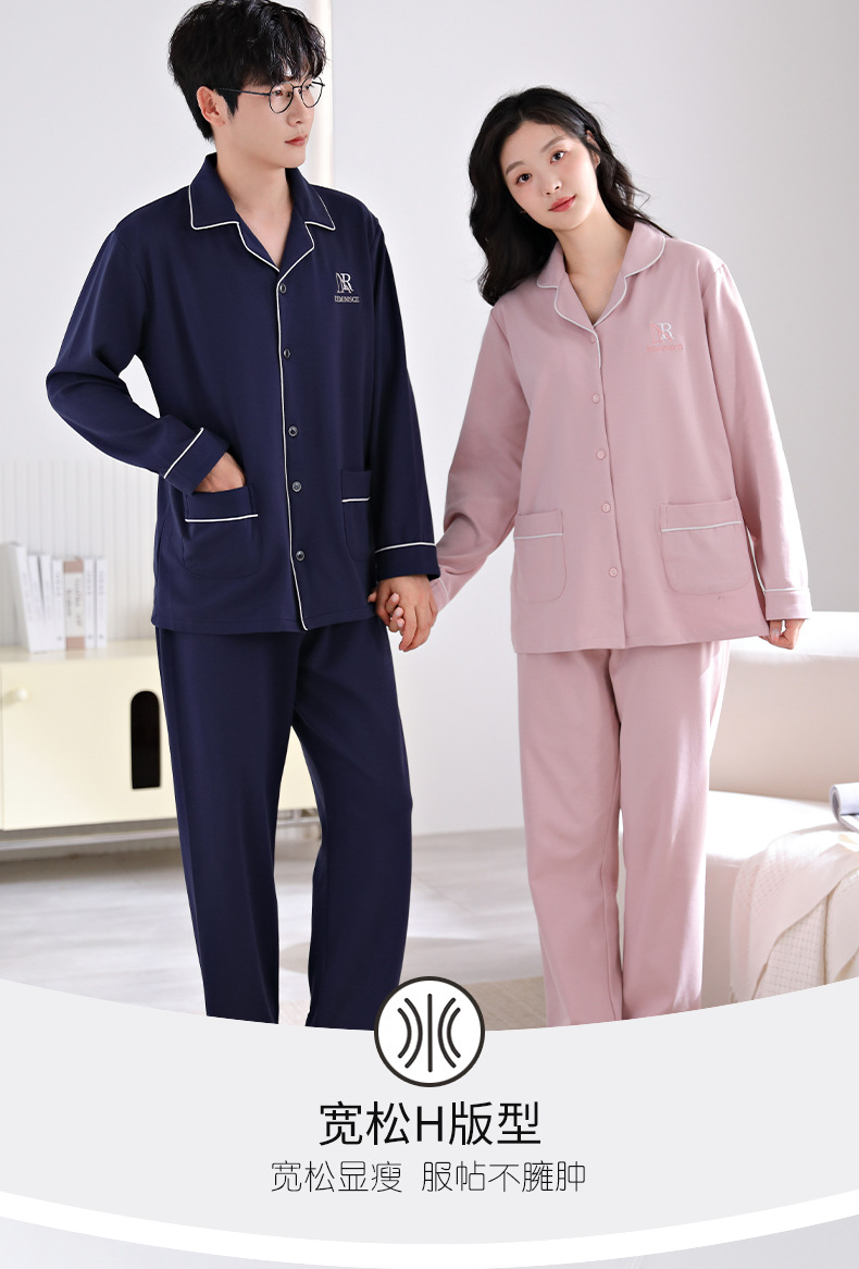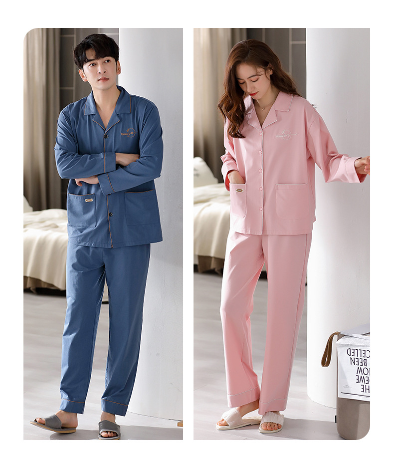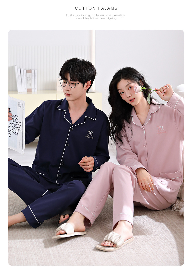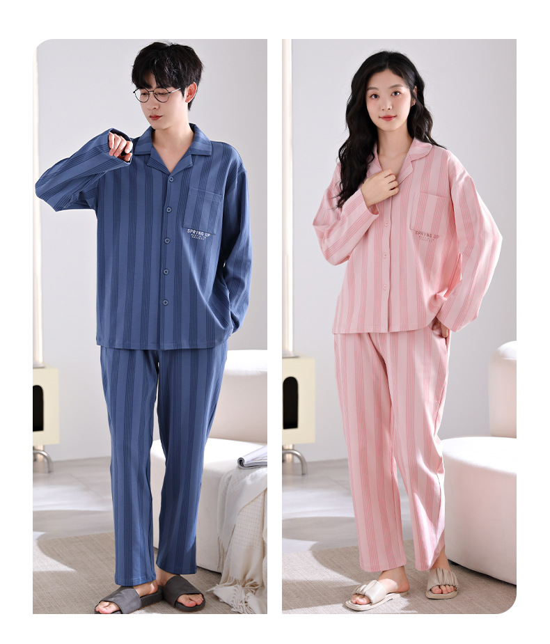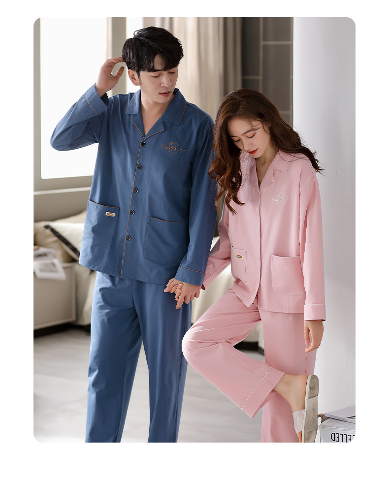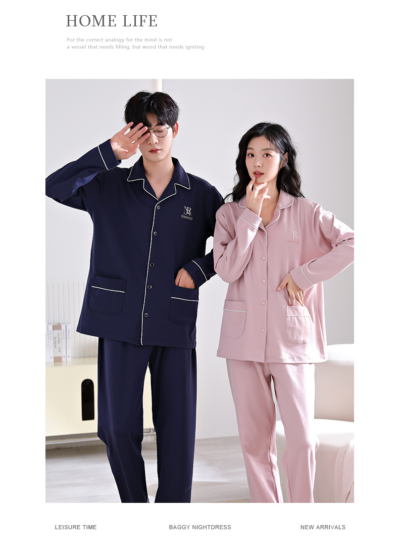 純綿のカップルのパジャマの女性春秋の新型の襟のカーディガンの大きいサイズの秋は綿の長袖の部屋の服の男性を着ることができます。