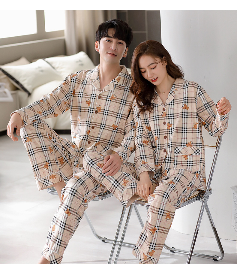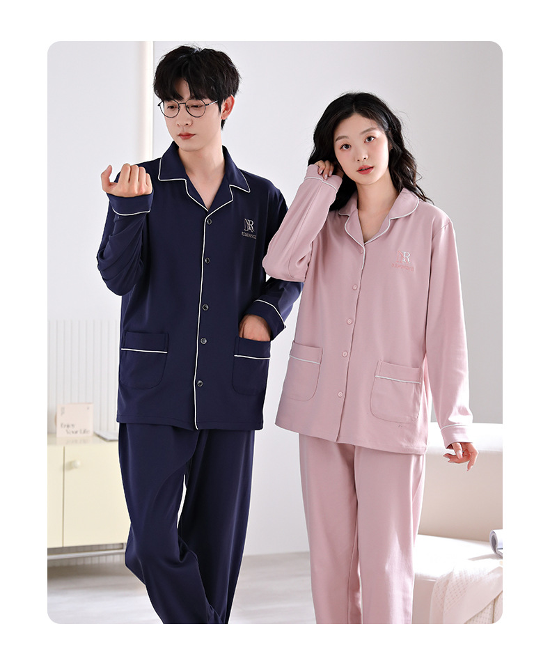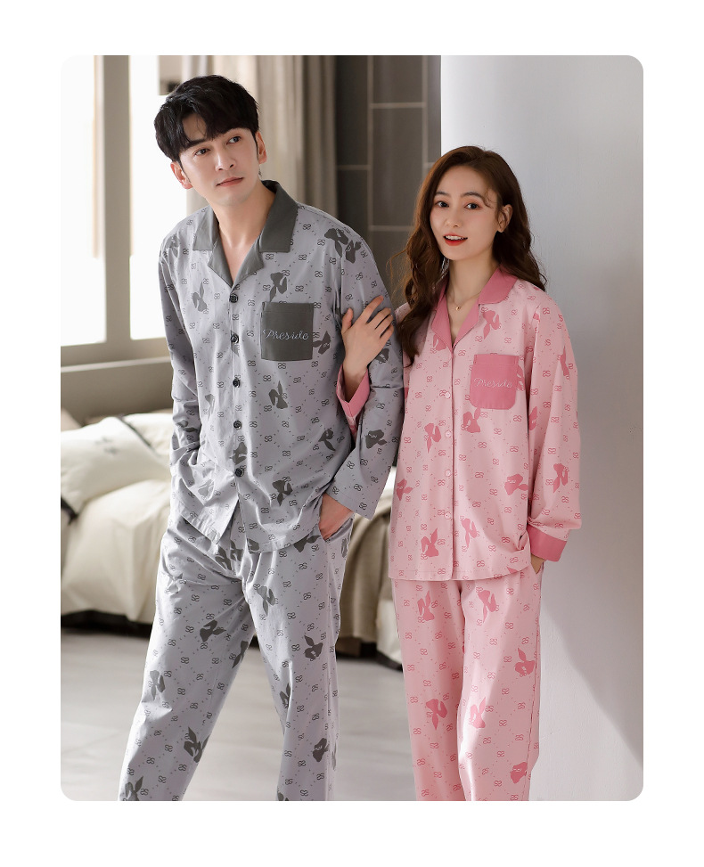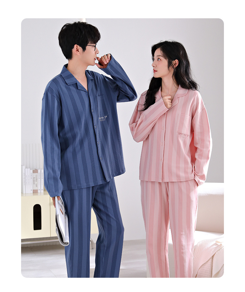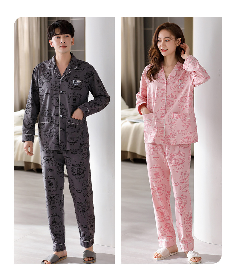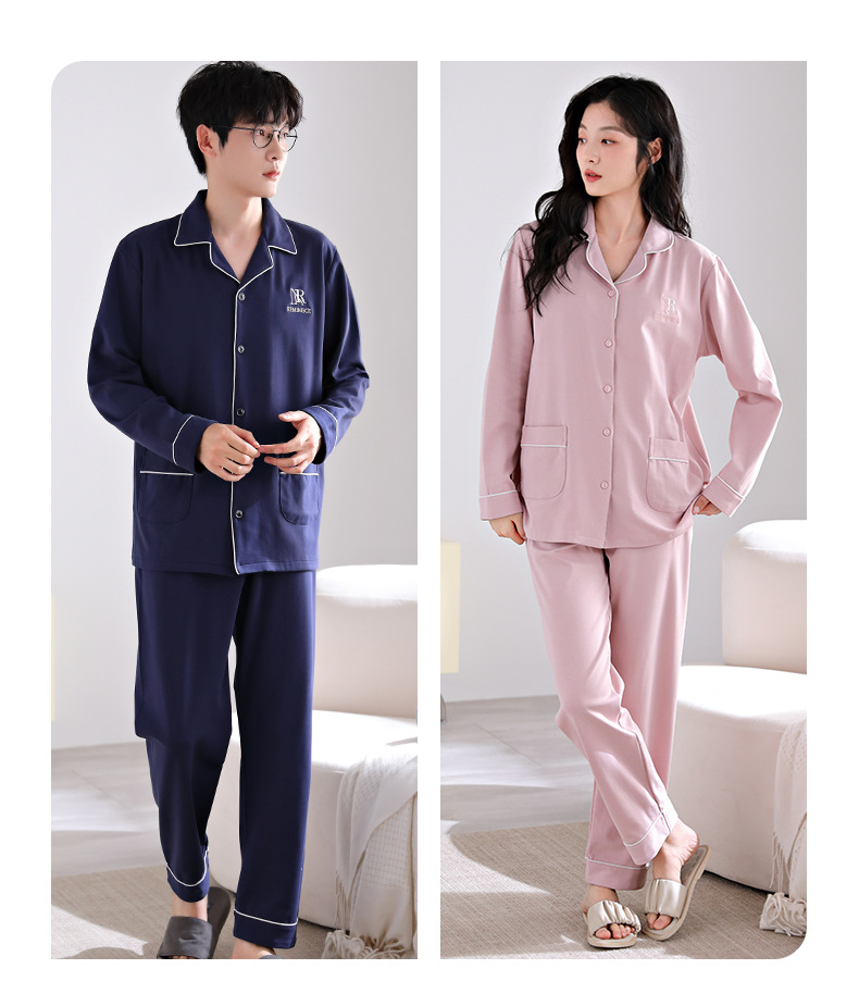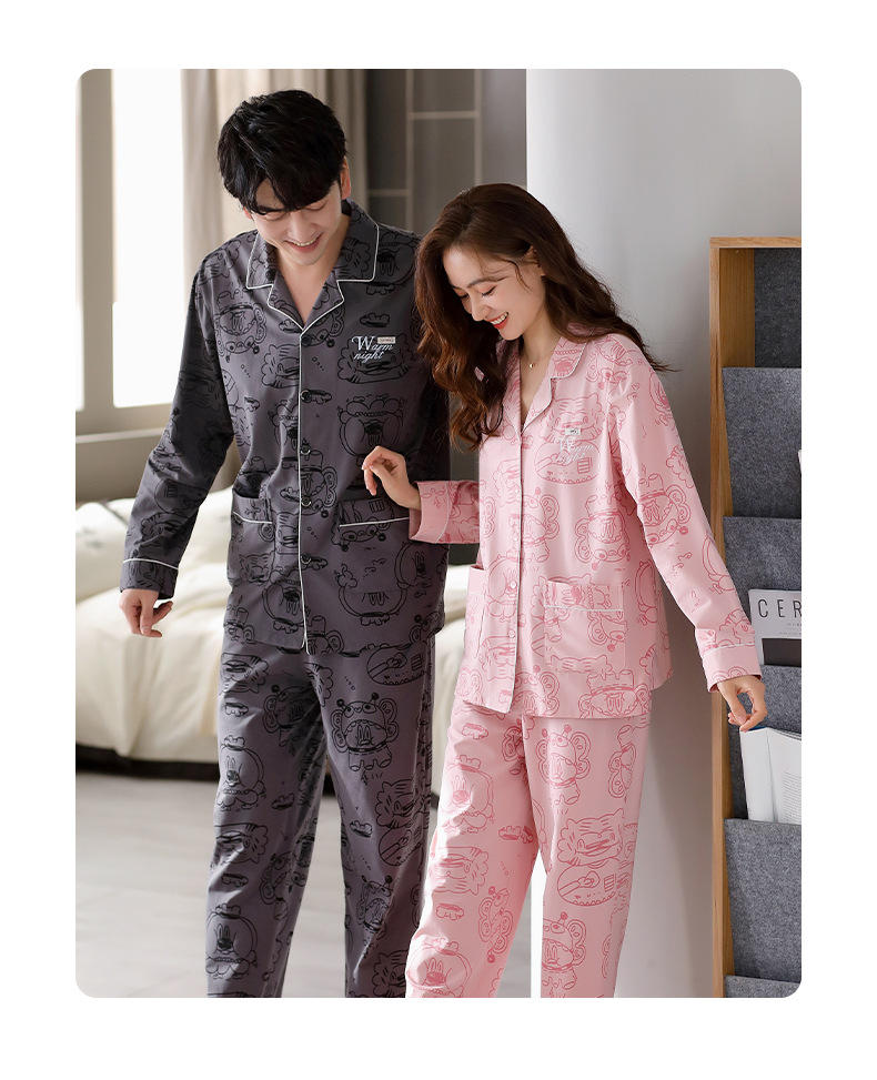 純綿のカップルのパジャマの女性春秋の新型の襟のカーディガンの大きいサイズの秋は綿の長袖の部屋の服の男性を着ることができます。