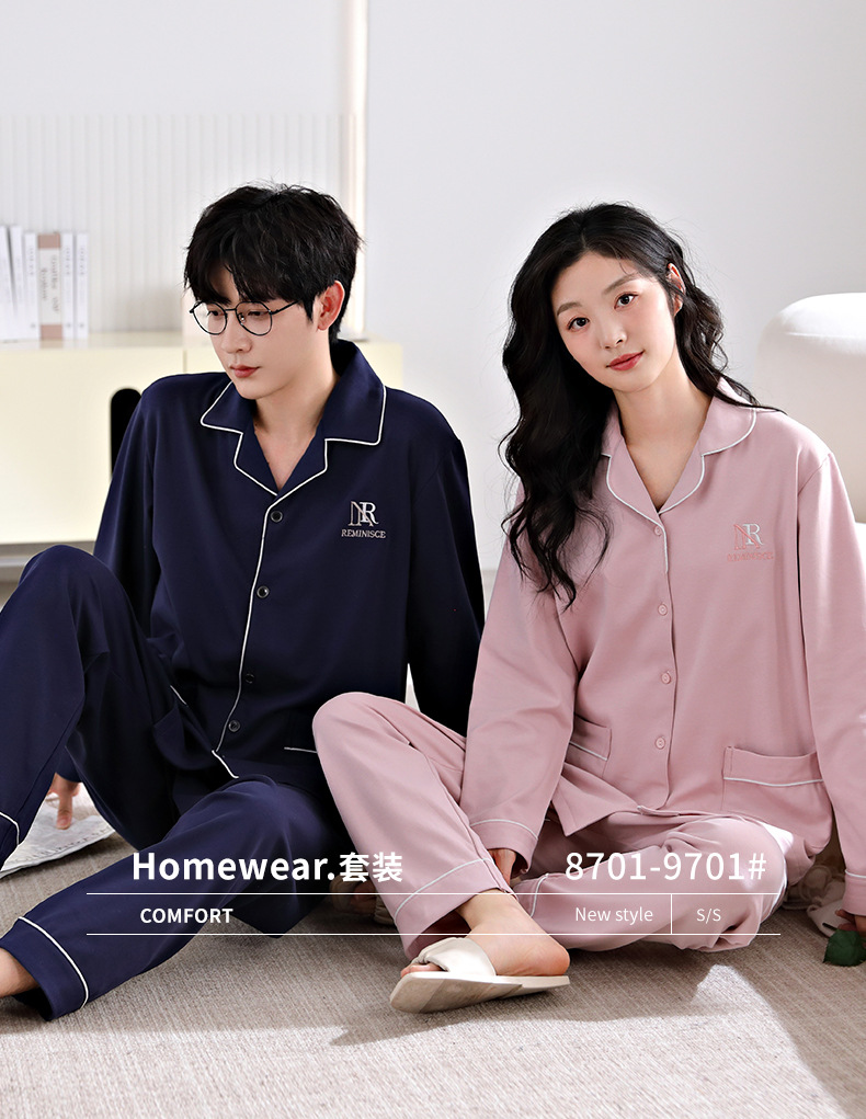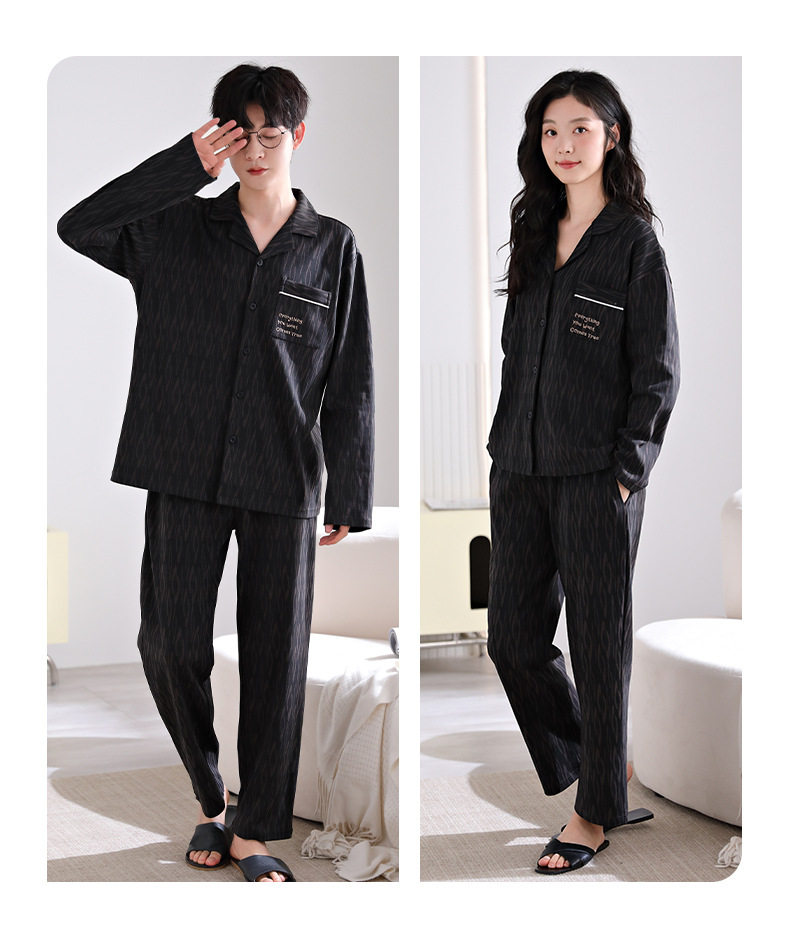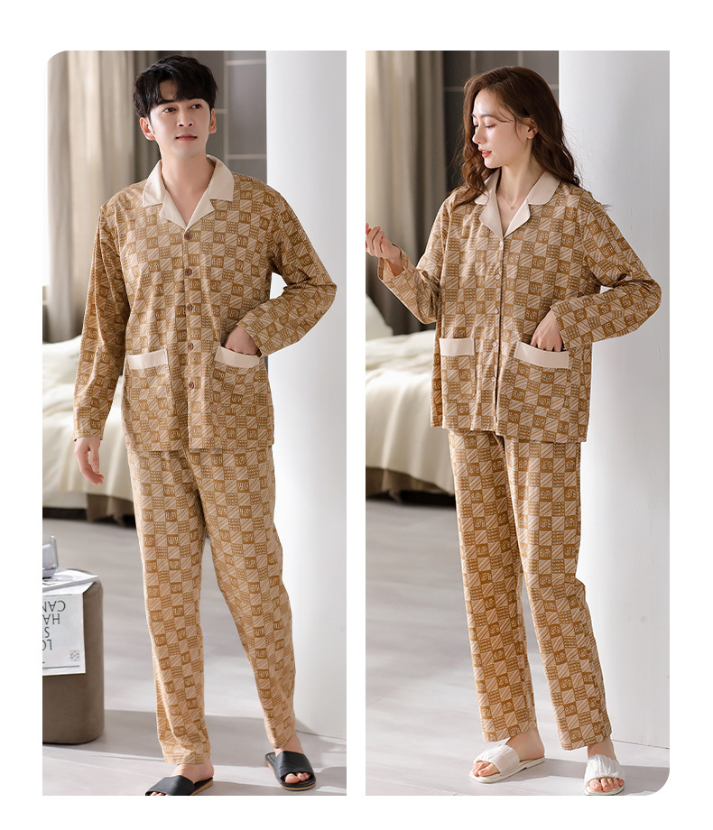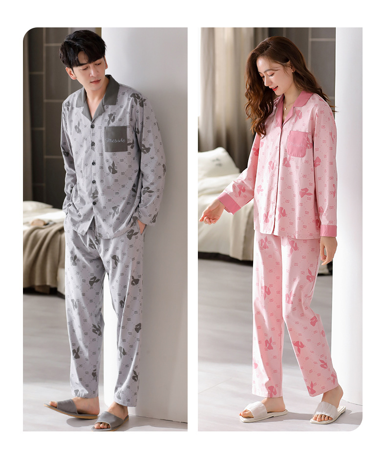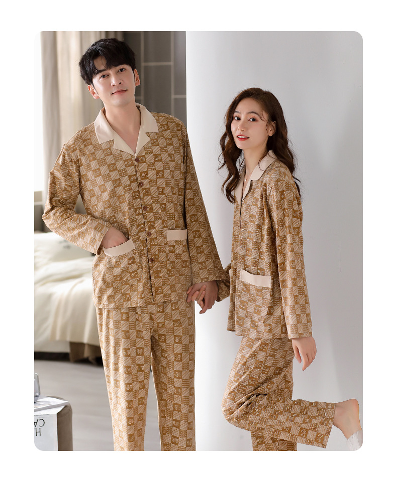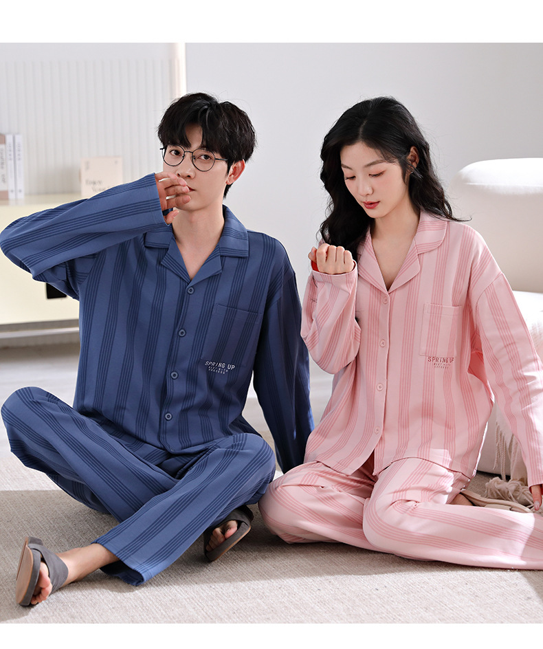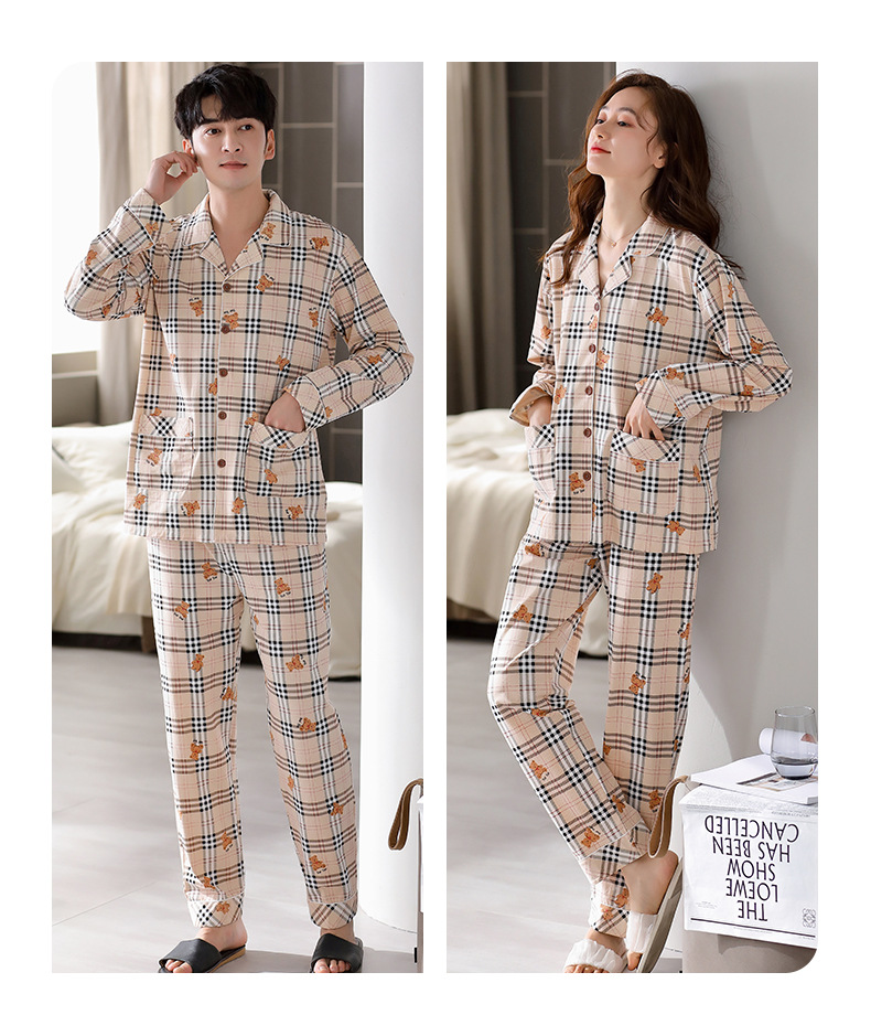 純綿のカップルのパジャマの女性春秋の新型の襟のカーディガンの大きいサイズの秋は綿の長袖の部屋の服の男性を着ることができます。