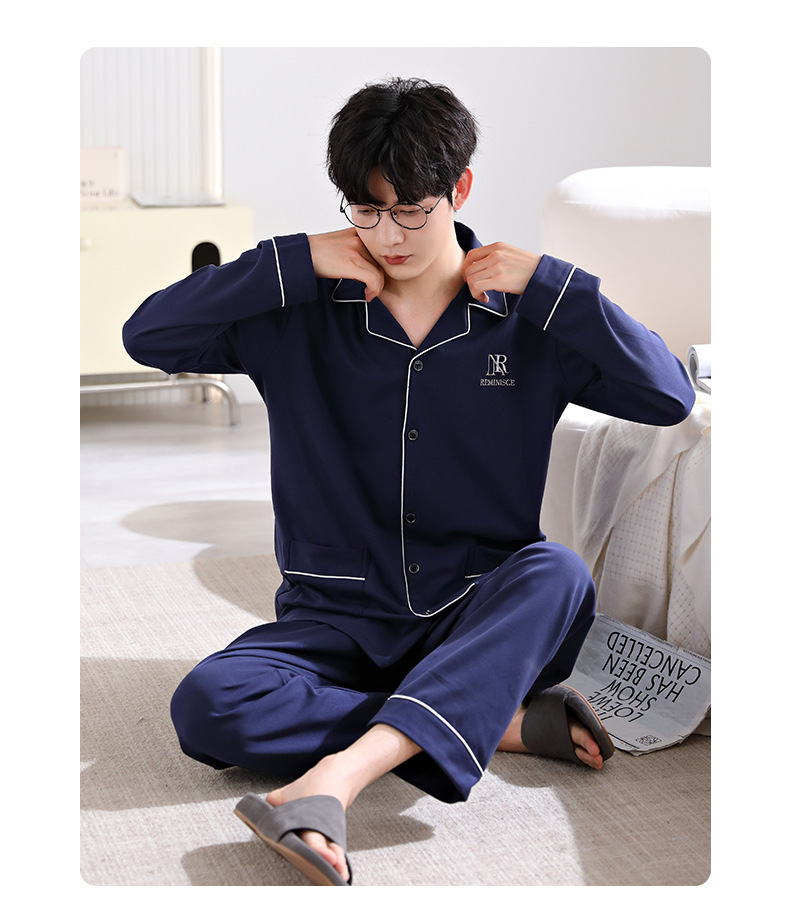 カップルのパジャマの棚の綿の春と秋の長袖の新型の男性の純色のカジュアルな大きいサイズは純綿の家の服を外に着ることができます。