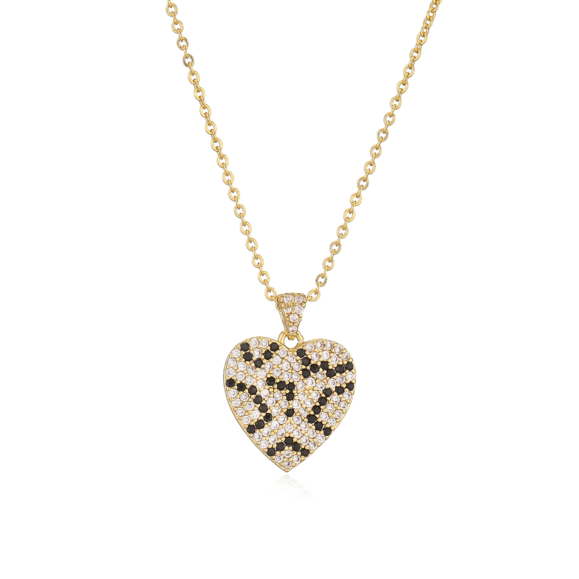 Hechengアクセサリーミニチュア2色五芒星ハートペンダントネックレスジルコンガンブラックメッキゴールドネックレス