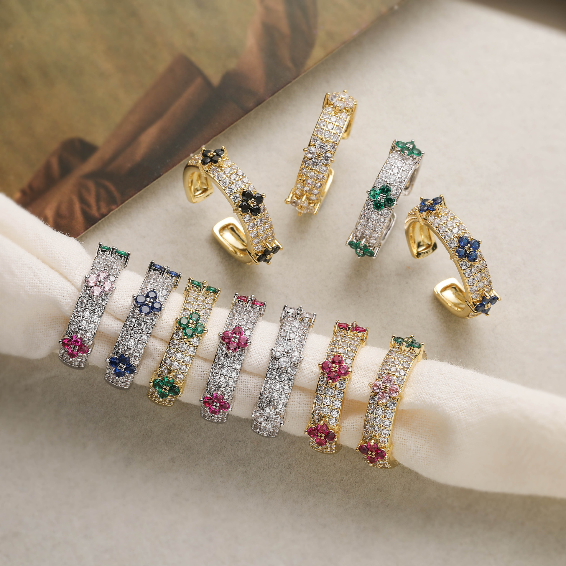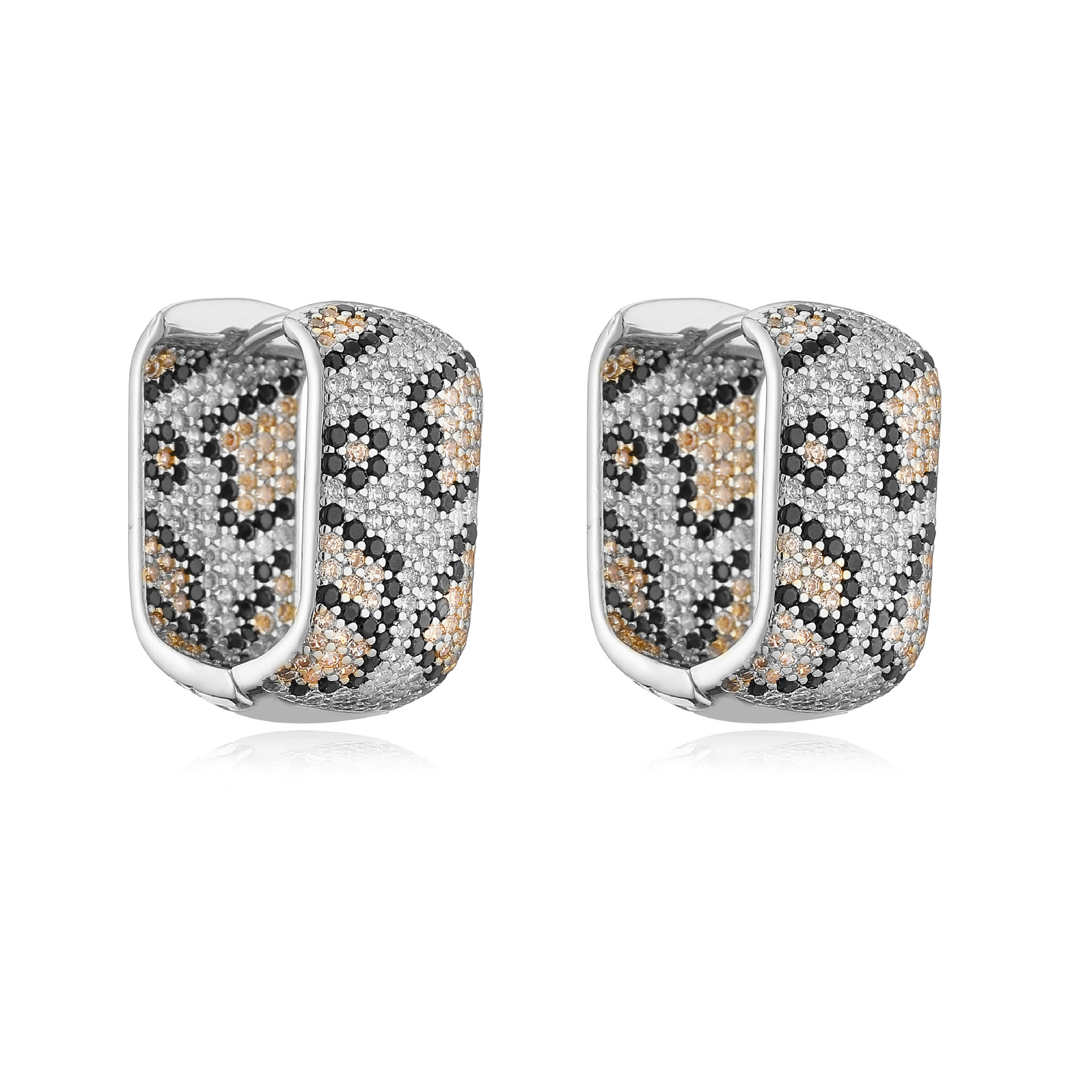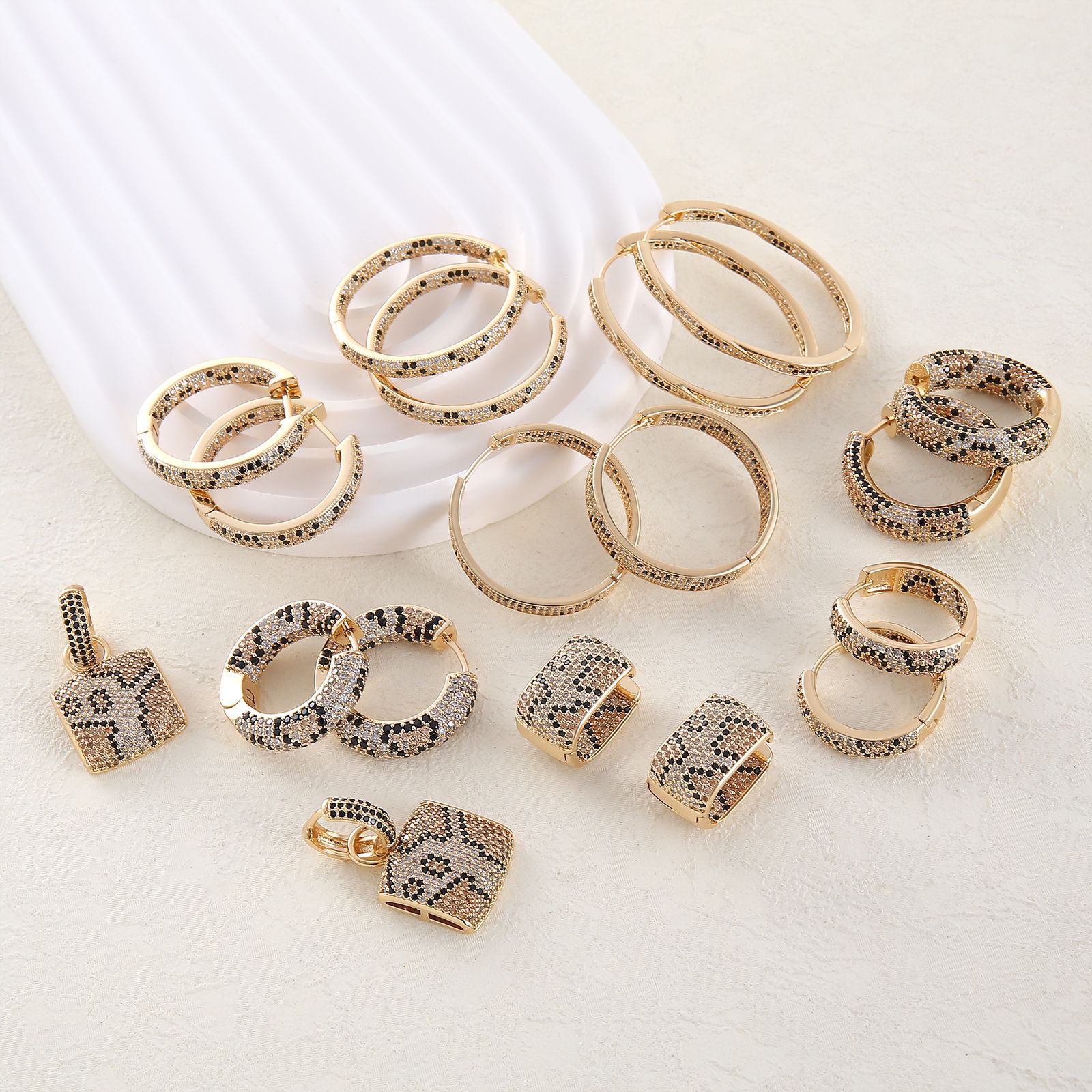 ファッション流行多色豹紋耳輪銅メッキ真金保色微入ジルコン蛇紋耳飾り金色耳ボタン卸売り