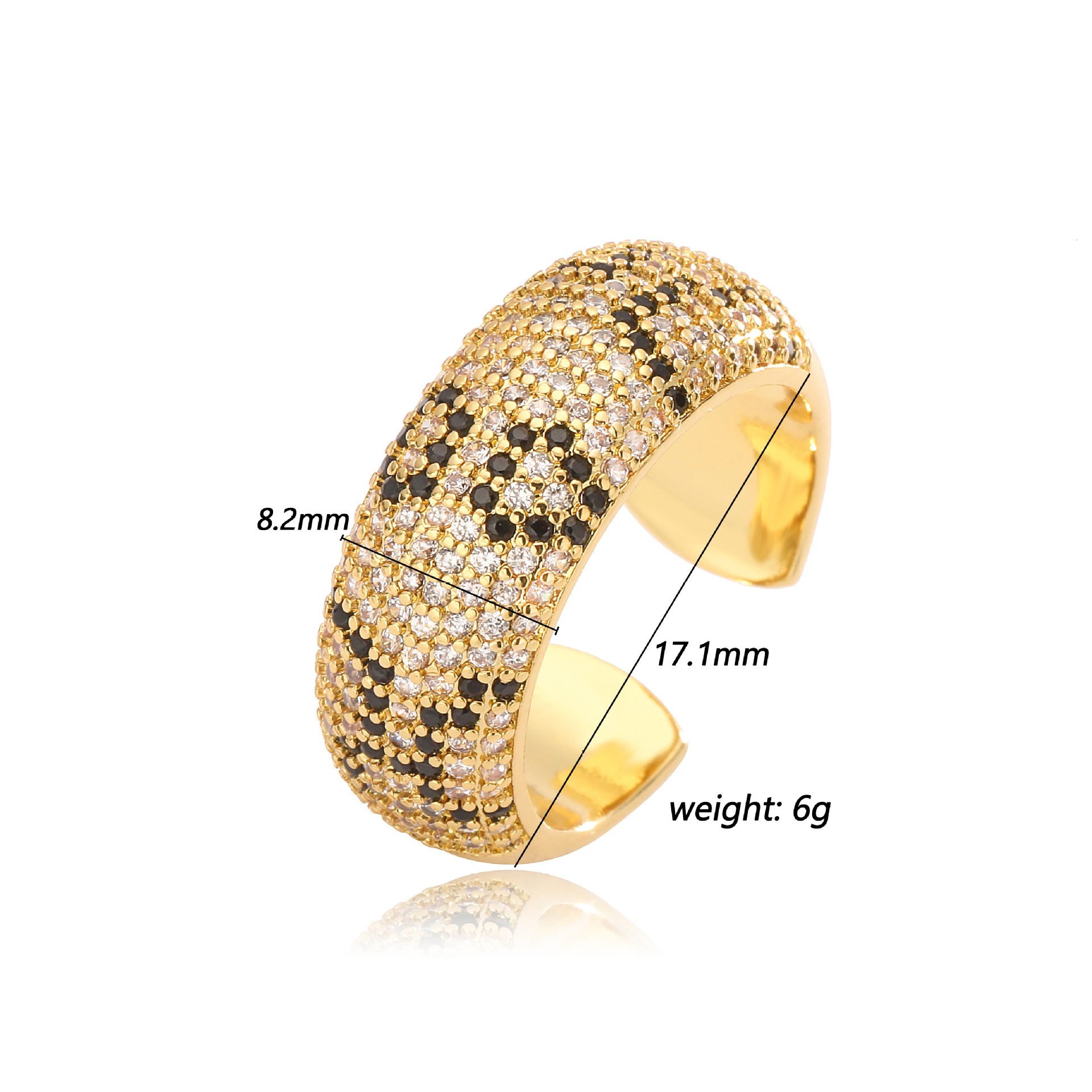 ヨーロッパとアメリカのクロスボーダー銅象嵌カラーダイヤモンドスネークパターンヒョウ柄リング女性用パーソナライズされたヒップホップラウンドラブオープン調節可能なリング
