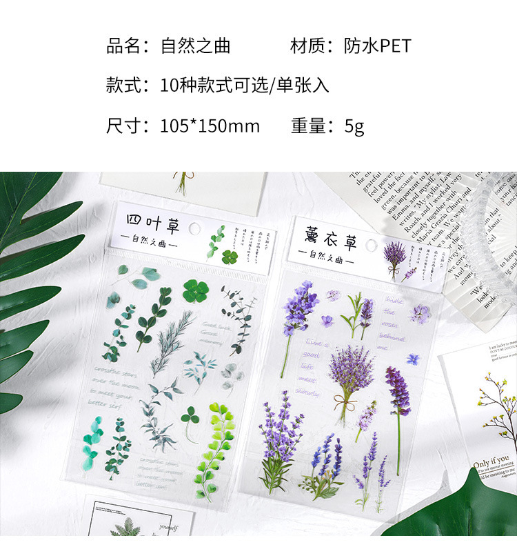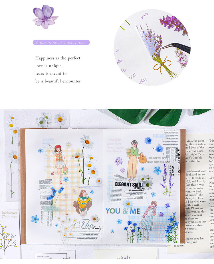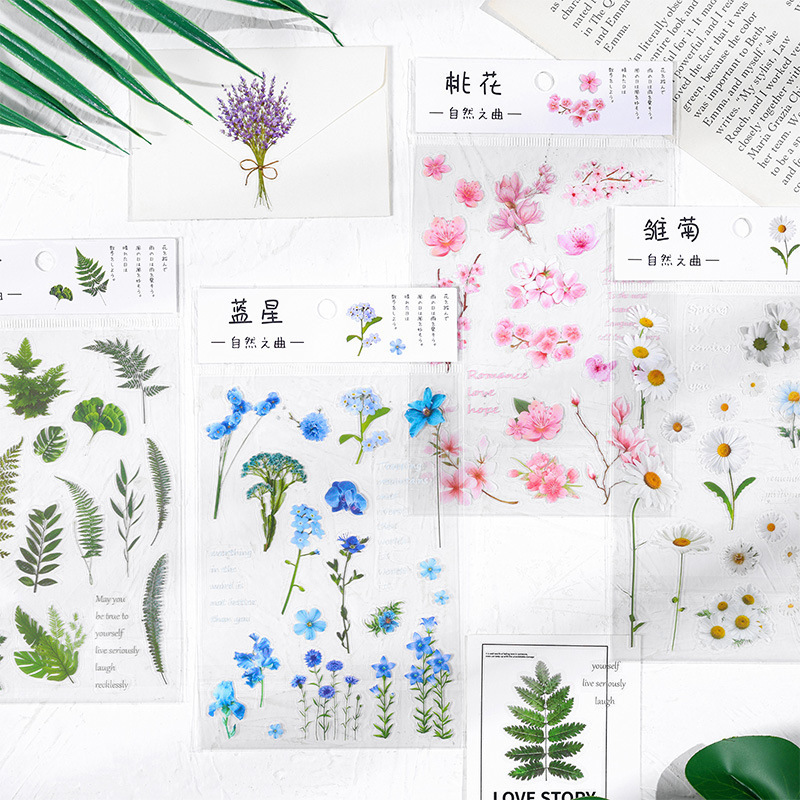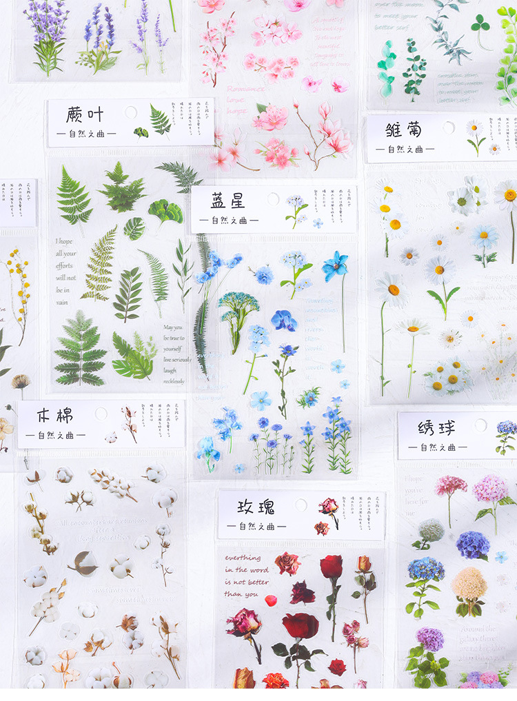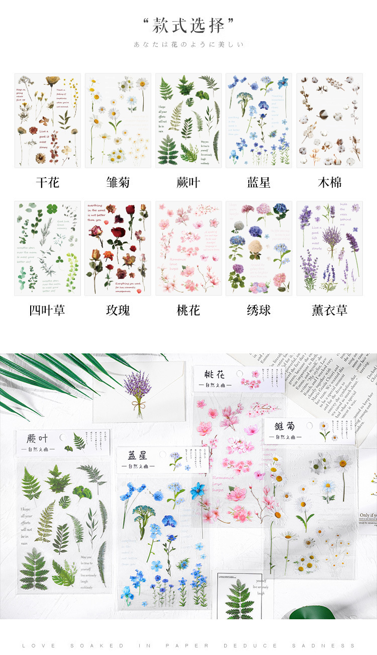 四季花言叶植物花ステッカーパックpetフリーカット手帳素材ステッカー少女インスタ飾り手帳ステッカー