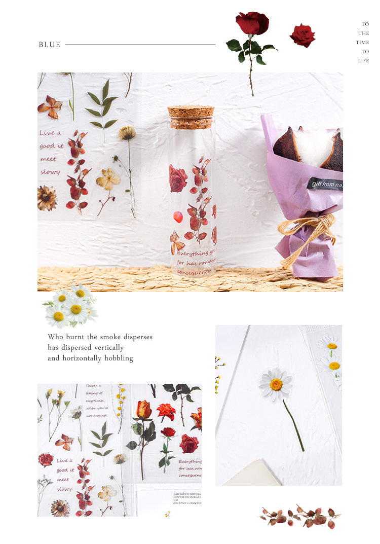 ペットフラワーステッカーパックイン防水透明植物弾丸日記 diy ドライフラワーエンボス素材ハンドブックステッカー