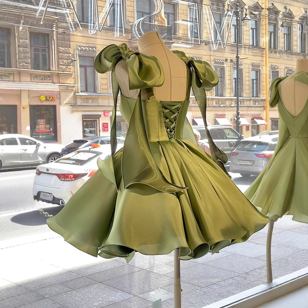 2025欧美跨境法式气质绝美高级感绿色蝴蝶结掐腰公主连衣裙子女夏