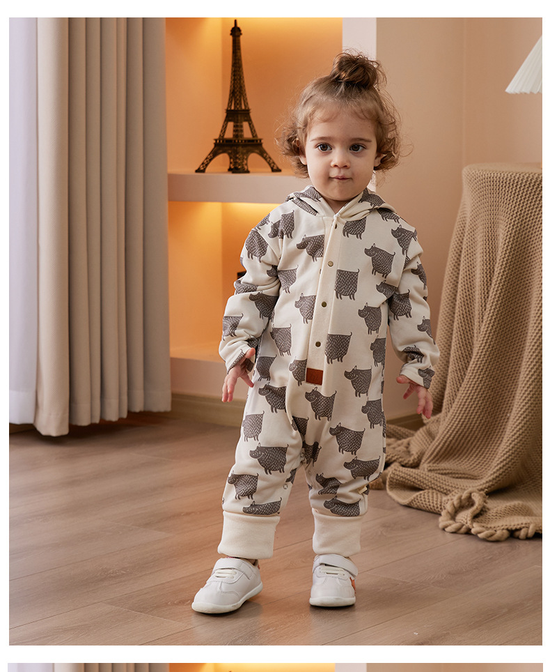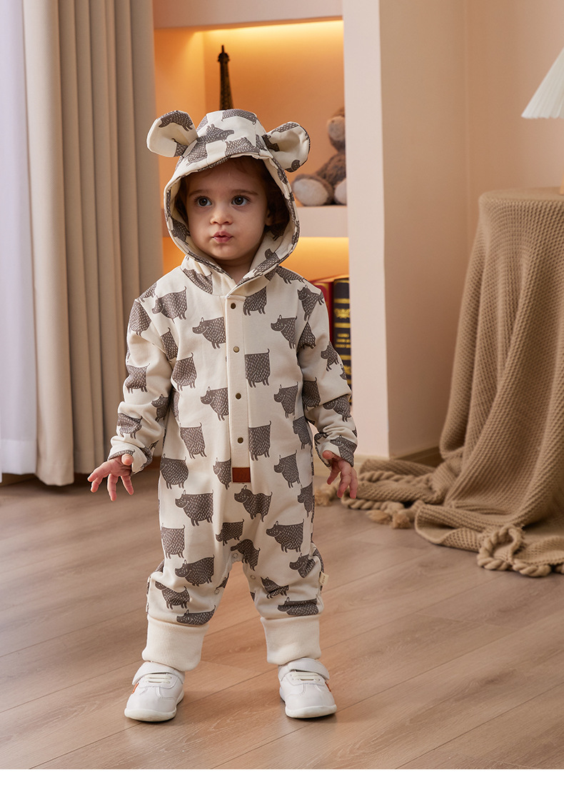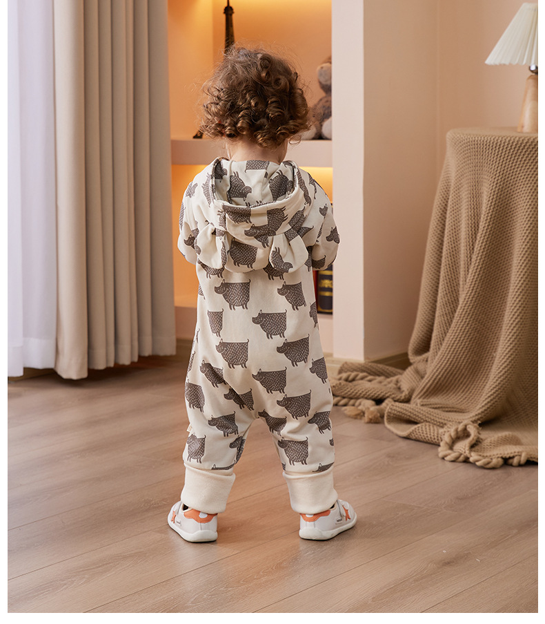 北欧風長袖外出連体服家庭服赤ちゃん秋冬哈衣帽子保温児童ネット赤卸売り