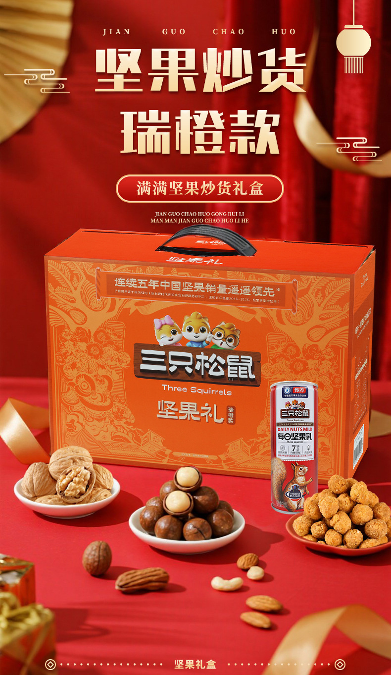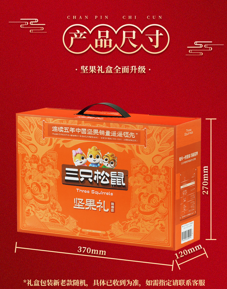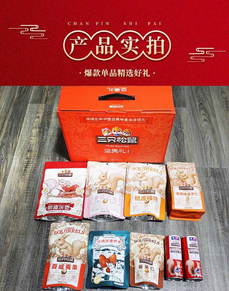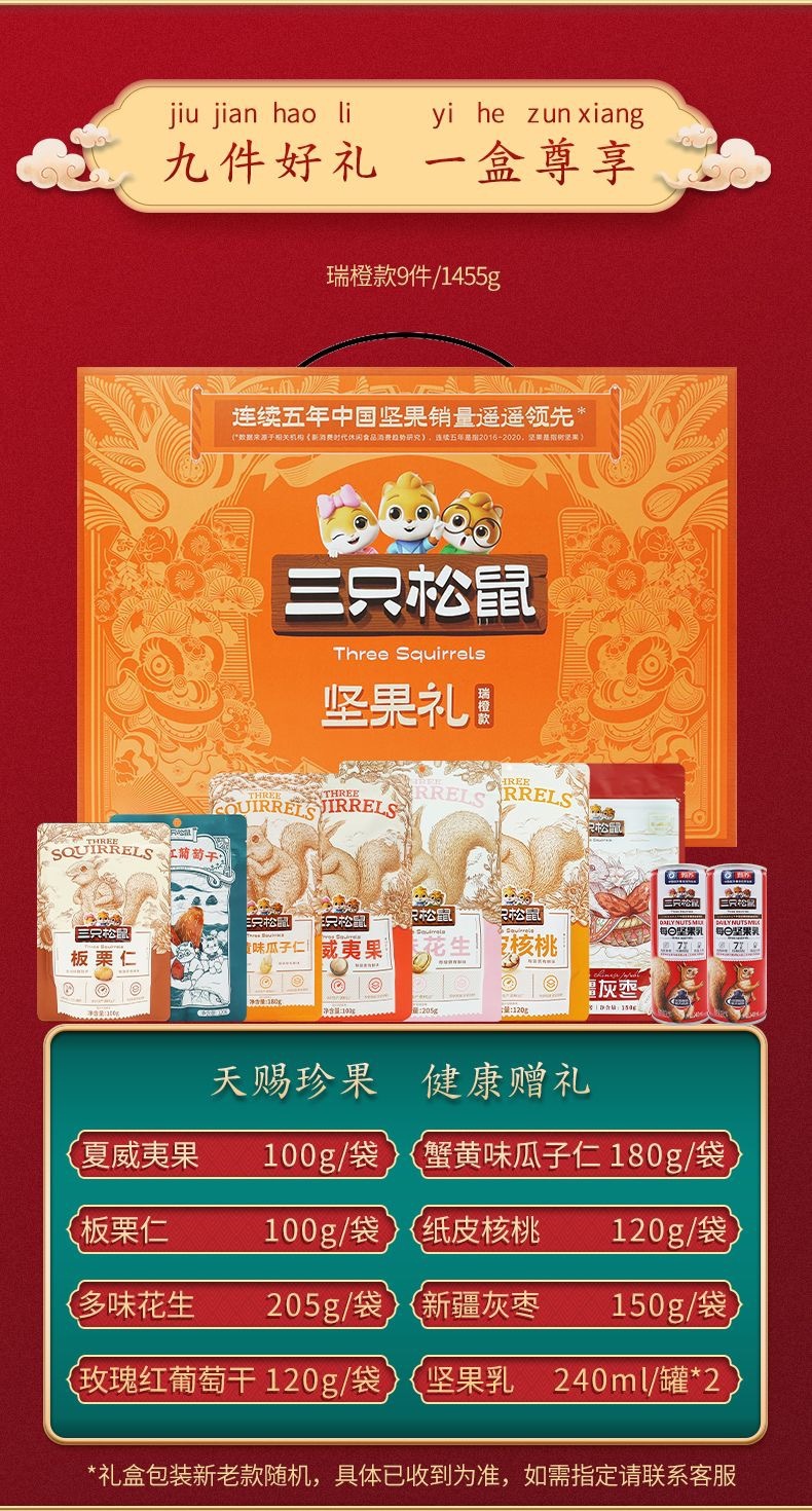 リスナッツ3匹のギフトボックスは820g/7袋の全箱のレジャー食品を共有してナッツを混ぜたギフトバッグを楽しんでいます