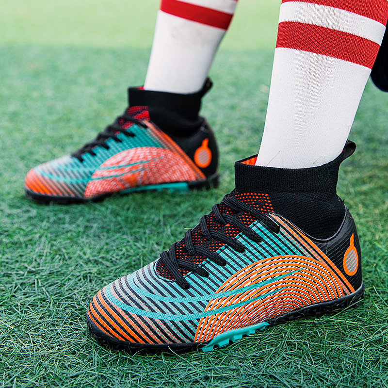 クロスボーダー新型サッカー靴男女成人金高組長釘AJ青少年砕釘TF試合訓練靴卸売り