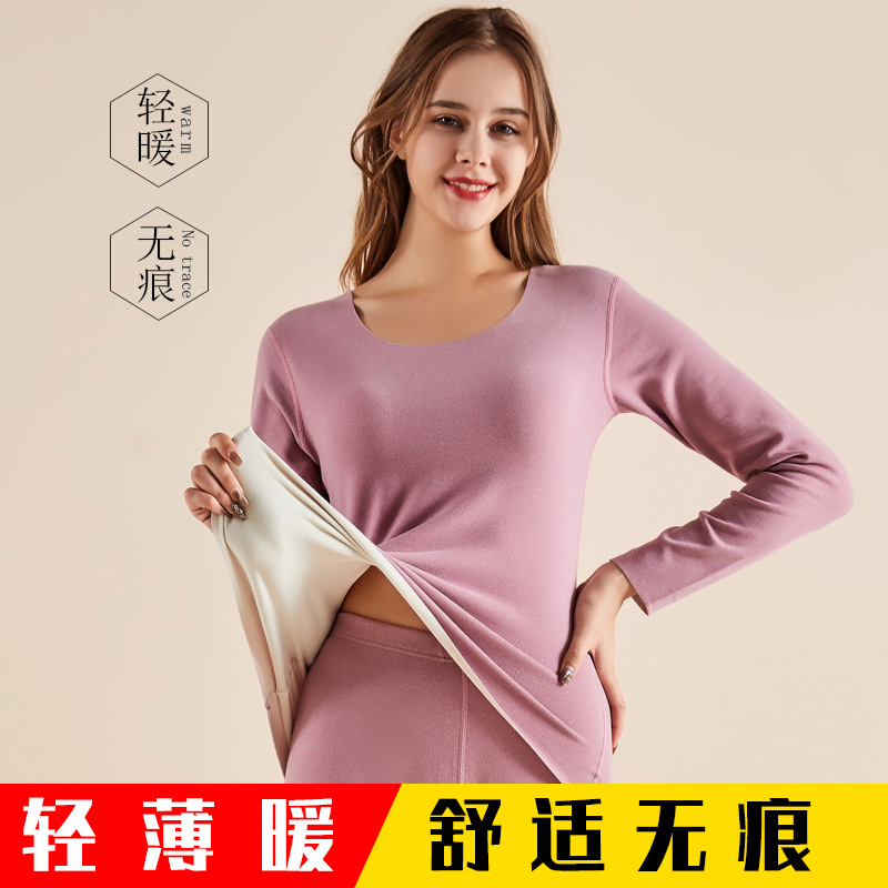 秋冬用レディース保温下着、裏起毛、丸首、インナーウェア、女の子用シームレス両面秋服・秋ズボンセット、卸売