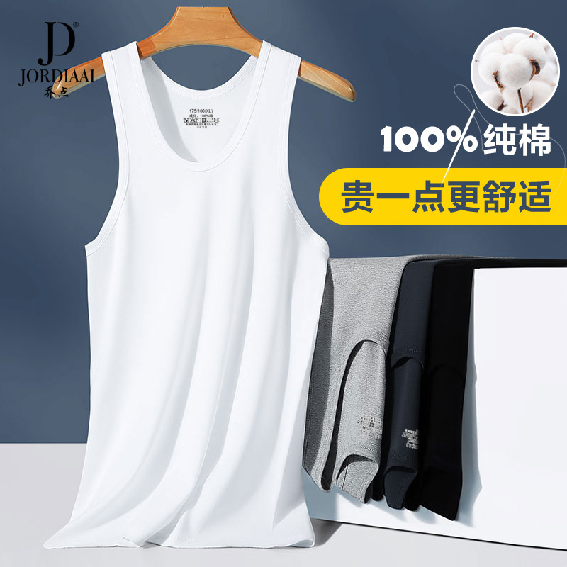 100% 綿メンズベストスポーツフィットネス白タイトノースリーブハードル青年コットンインナー