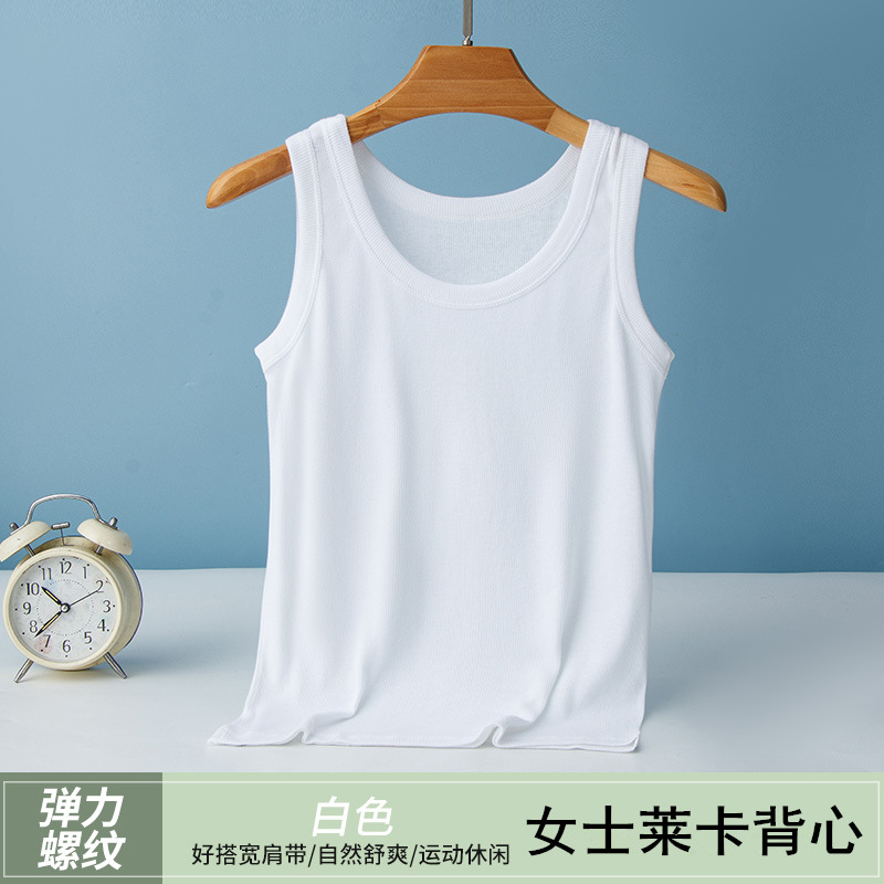女性のスレッドベスト夏ライクラ綿薄いサスペンダー下着白スリムフィットノースリーブトップボトリングシャツ