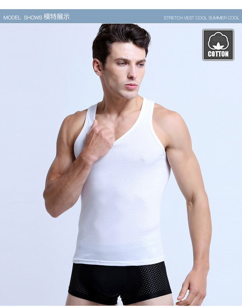 夏の純綿吸汗ベスト男性運動フィットネス馬甲の薄い弾力性男性服の中にはシャツを着ています。